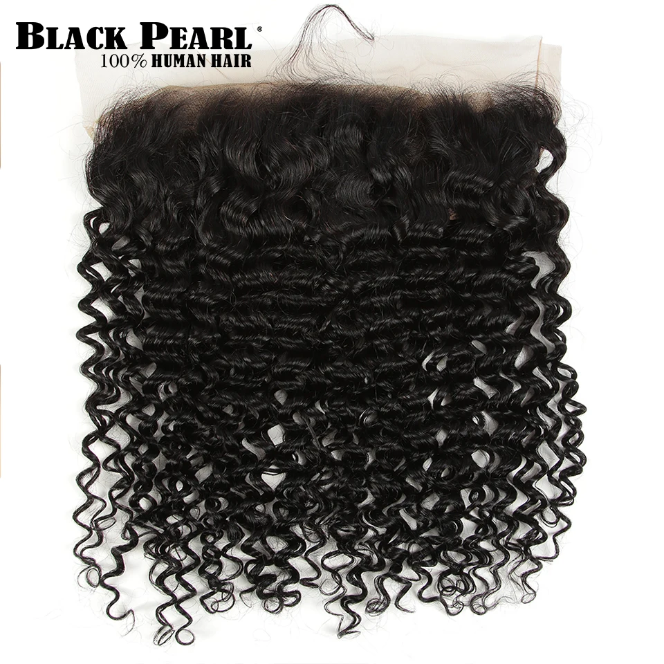 Черные жемчужные фронтальные волосы с пучками перуанские волнистые пучки с фронтальной 100% Реми человеческие волосы с застежкой