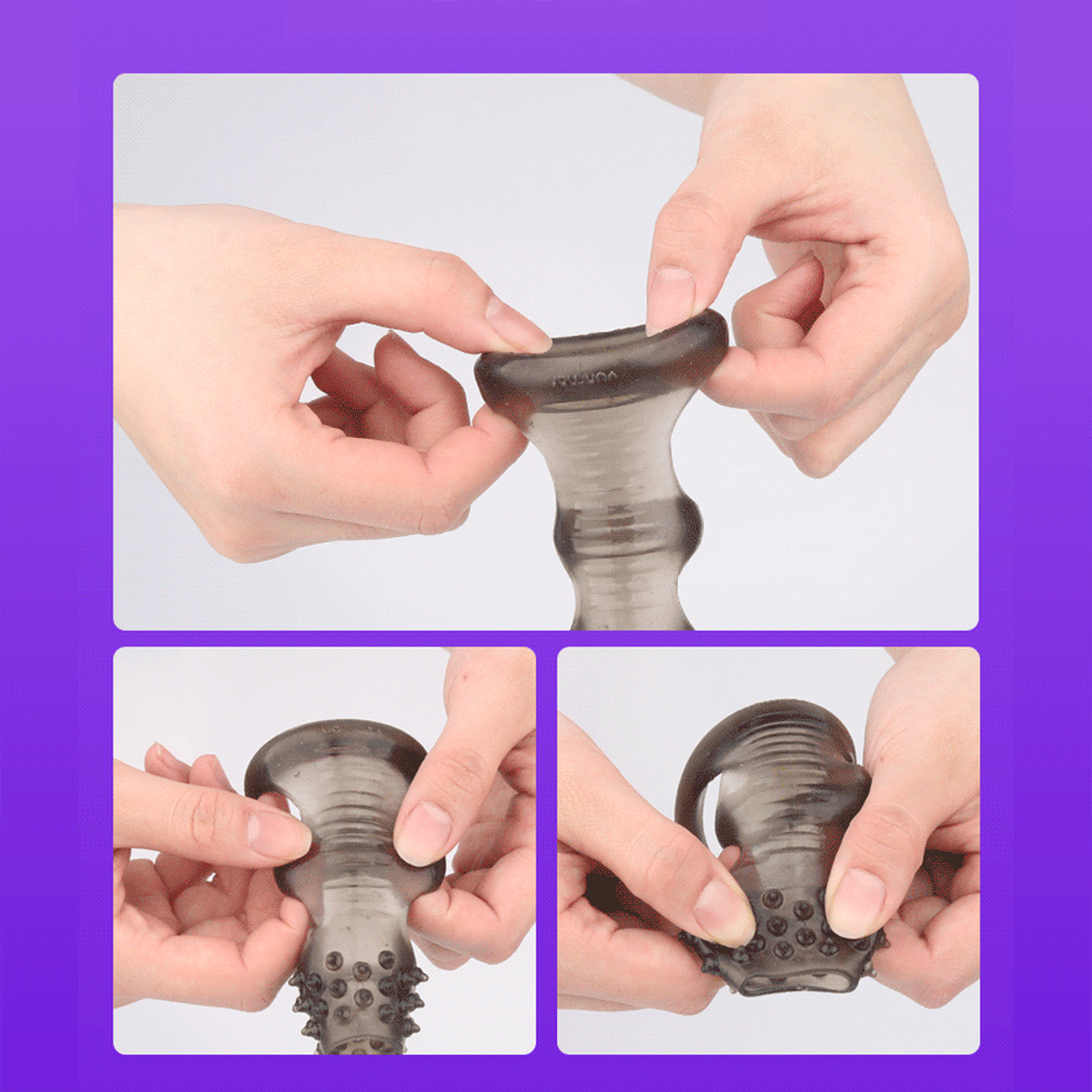 100% новый товар высокого качества. Рукав для пениса, многоразовый презерватив, расширитель и задержка Рекомендуется использовать смазочное масло перед использованием Задержка эякуляции. СпецификацияS: Размер: как на картинке Материал: TPE Цвет: черный