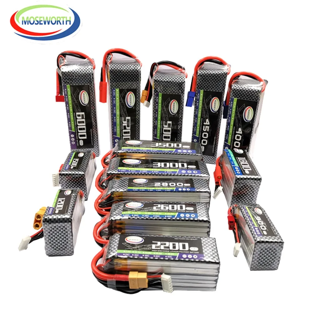 MOSEWORTH RC игрушки LIPO Батарея провод с силикатной гелевой Батарея 2S 3S 4S 6S 7,4 V 11,1 V 14,8 V 22,2 V 1300 мА/ч, 1500 мА/ч, 1800 мА/ч, 2200 мА/ч, 2600 мА/ч, 3300 мА/ч, 3500 мА/ч, 4200 мА/ч, 5200 МАч 6000 мАч 30C 35C 40C 60C для RC вертолета самолета автомобиля лодочный Квадрокоптер дистанционного управления
