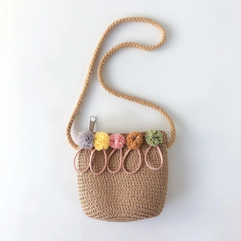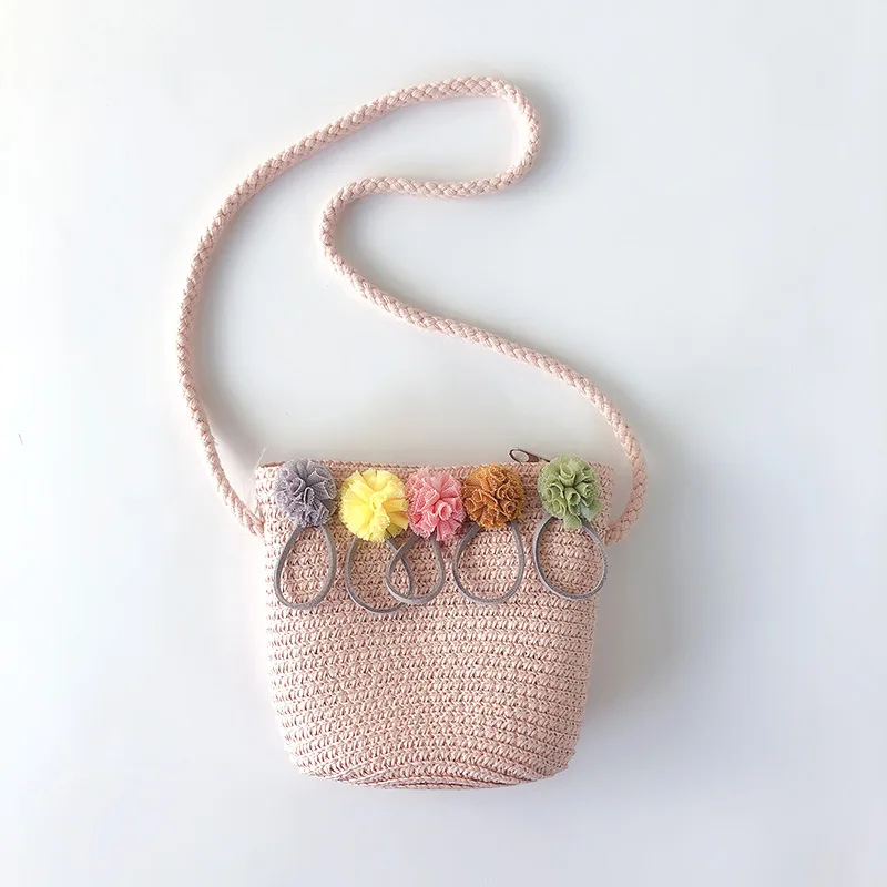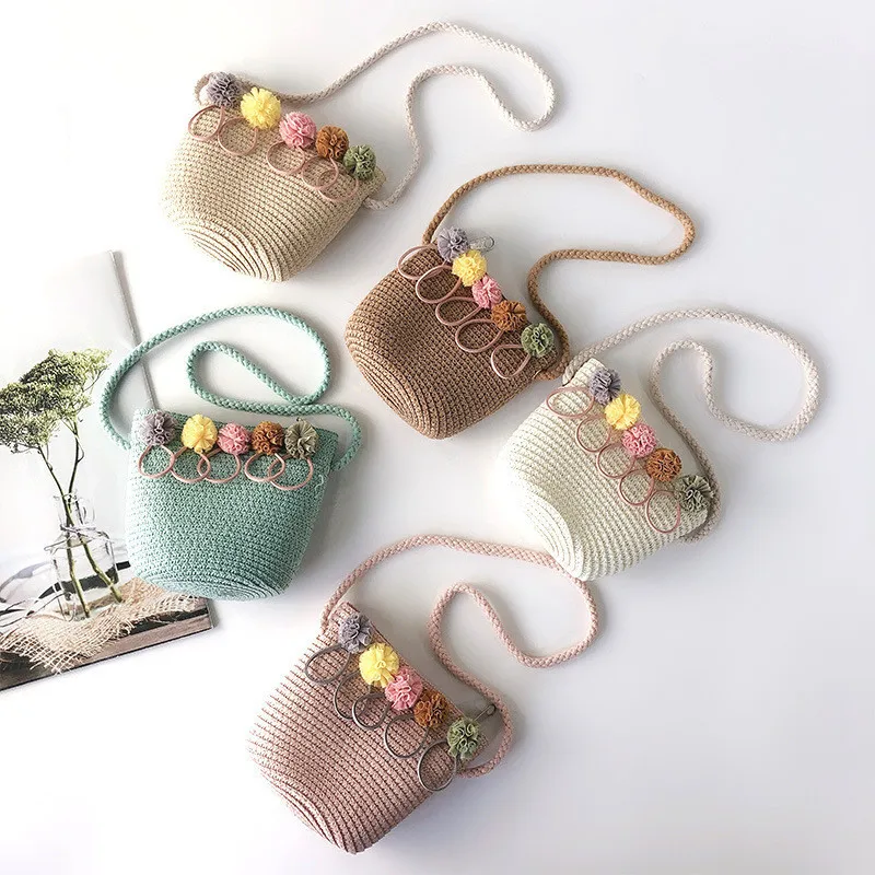 Детская сумка через плечо, плетеный миниатюрный мессенджер для девочек, Соломенная пляжная сумочка ручной работы с цветочным рисунком из ротанга