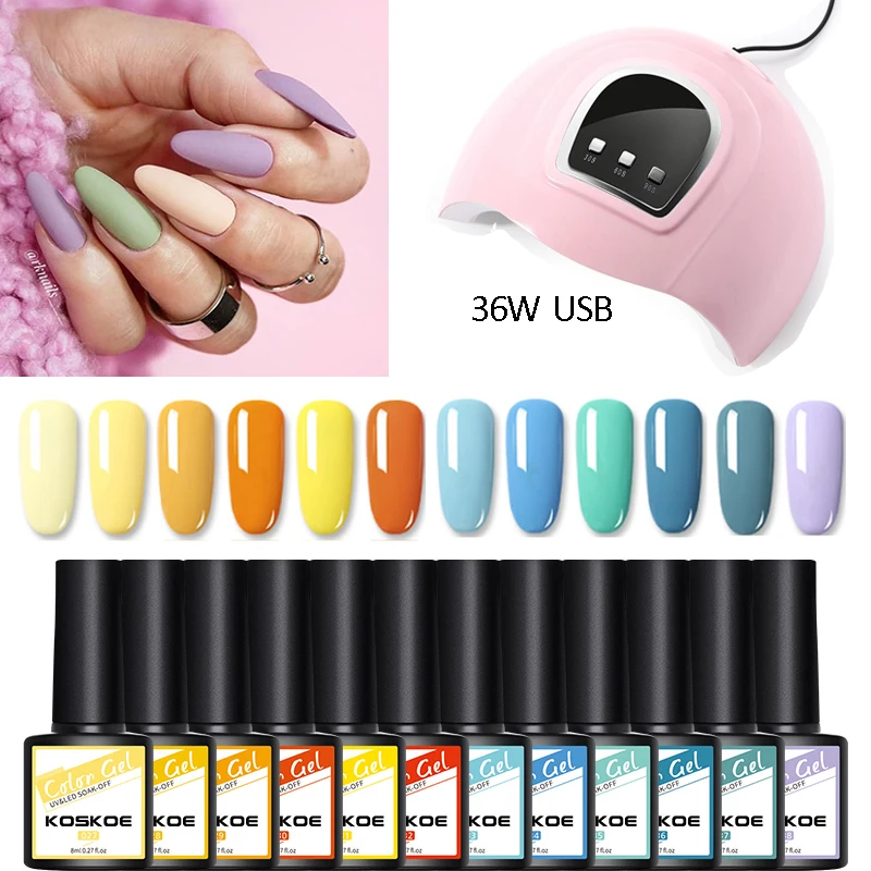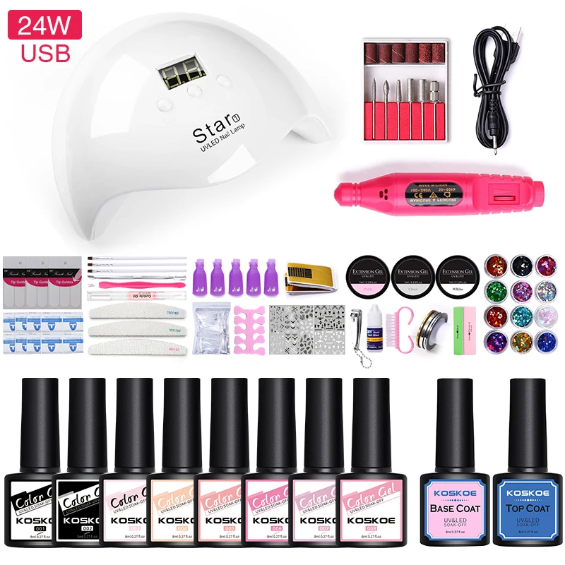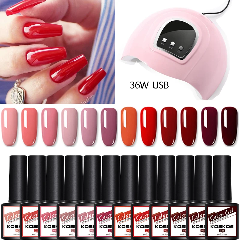 KOSKOE набор для ногтей Гель-лак набор 810121416 УФ светодиодный Цвет Комплект гель-лаков для ногтей с светильник ногтя украшения для ногтей инструмент