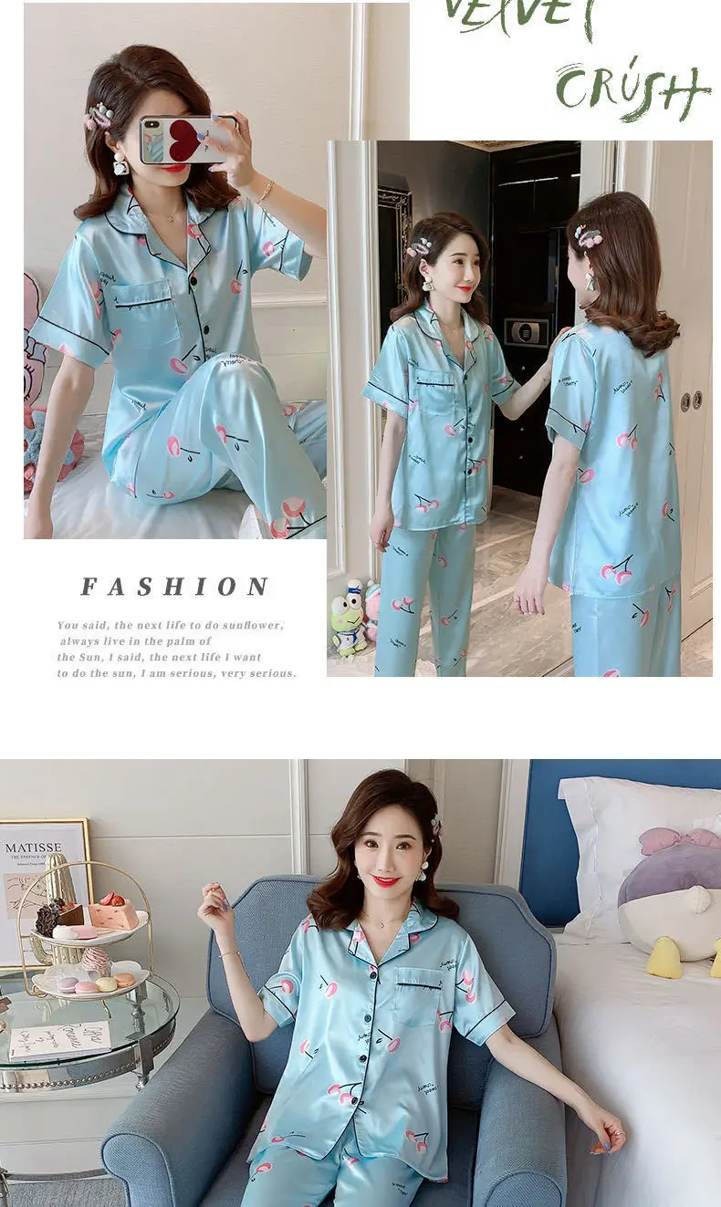 Лидер продаж Короткие Шелковая пижама с коротким рукавом терморегулирующий на мягкой подошве; Женские летние домашний комплект одежды для девочек, одежда для сна пижамы размера плюс 3XL 4XL 5XL 85 кг Комплект ночной одежды