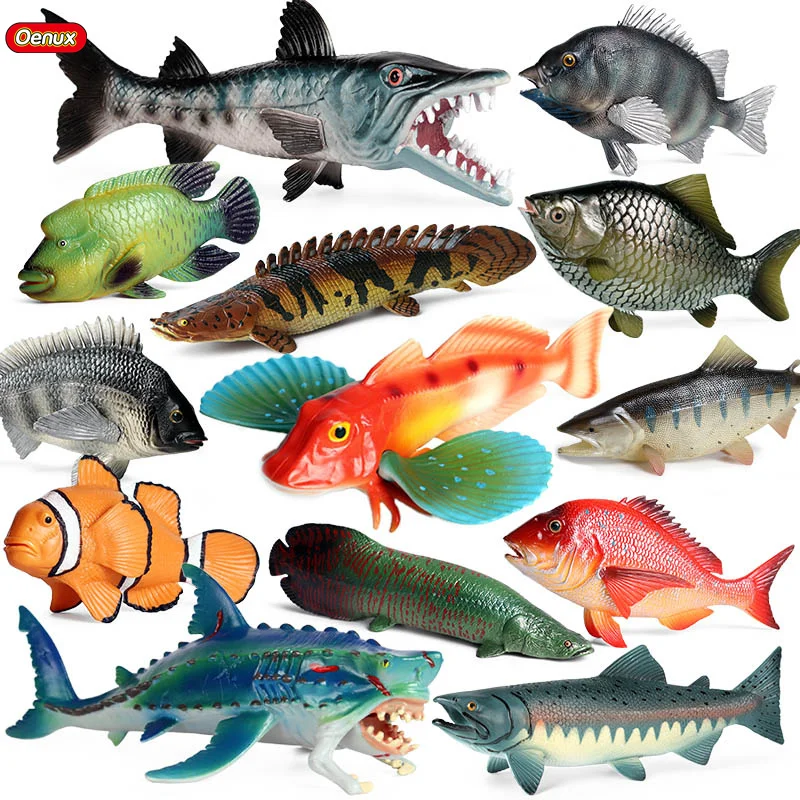 Особенности: Oenux Ocean Animals Fish модель моделирования SeaLife Coelacanth Tilapia Bass лососевый Карп фигурки аквариумные Развивающие детские игрушки