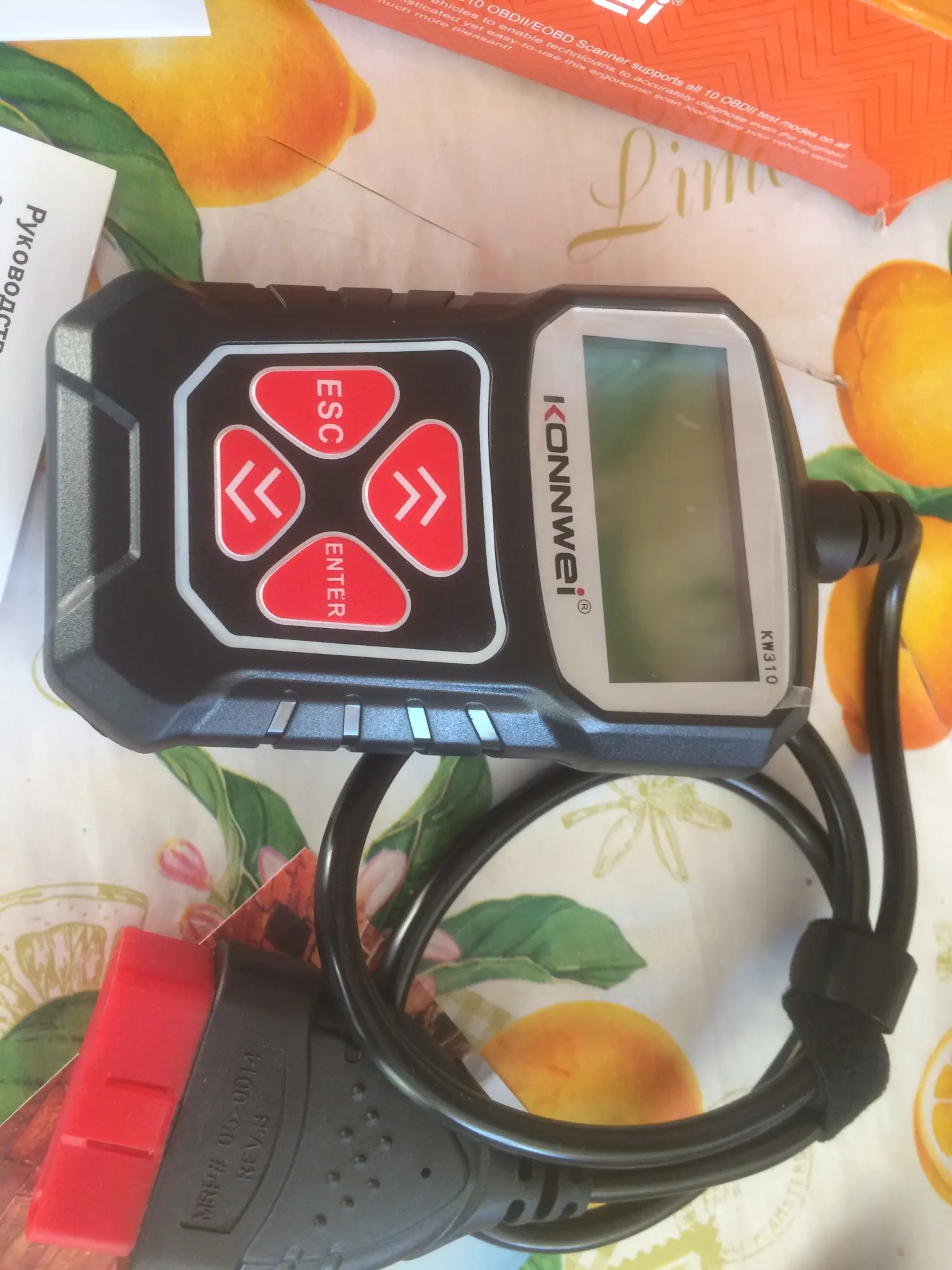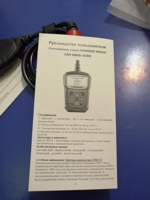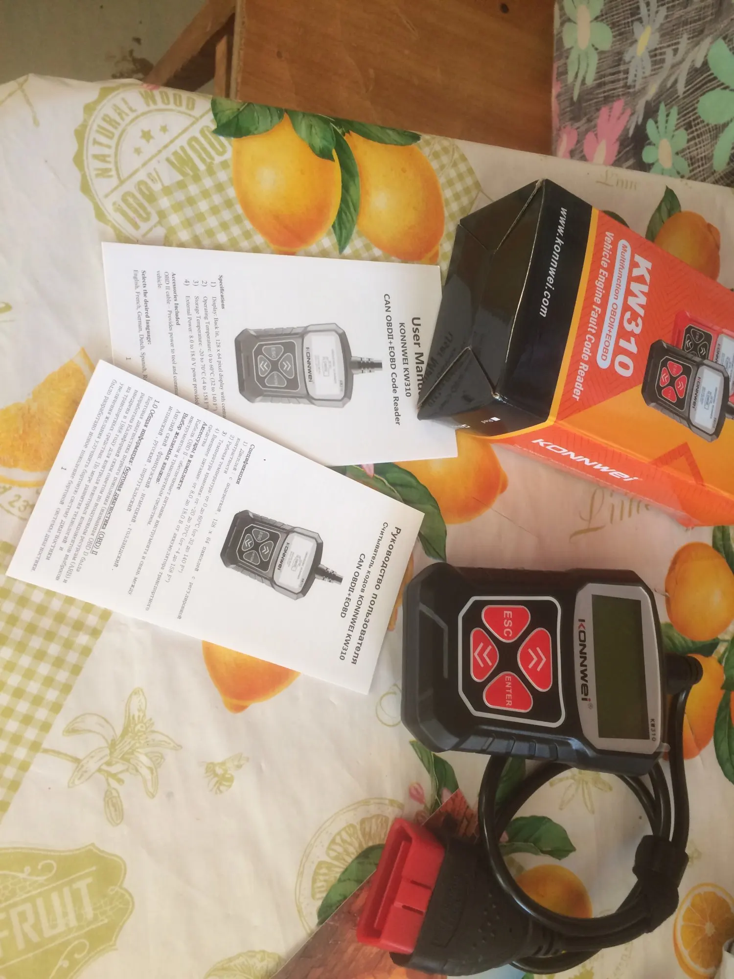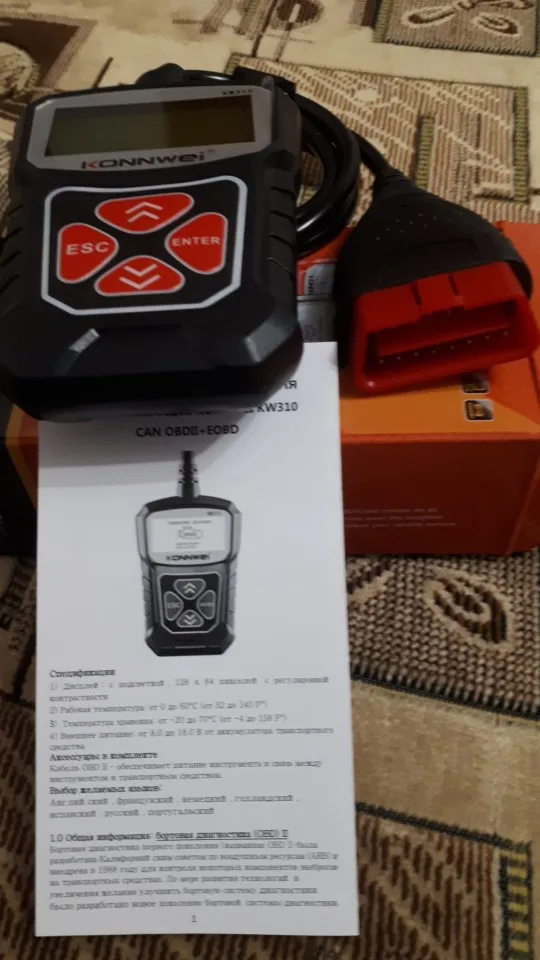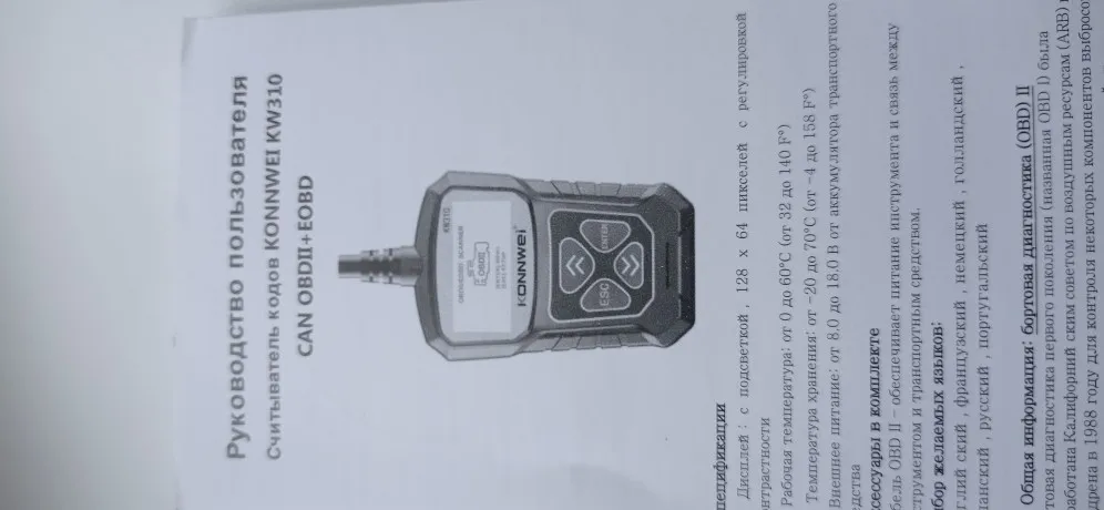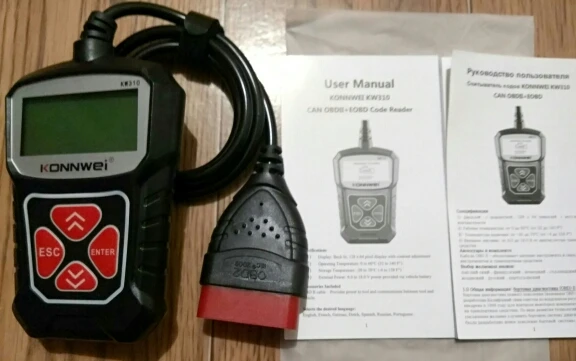 Описание товара очень точное. Дошел быстро и в целости, за исключением: упаковка сканера KW310 помята. Сам сканер цел. К нему есть инструкция и на русском языке. Сканер и тестер еще не проверял. Проверю - дополню отзыв. Рекомендую товар и продавца.