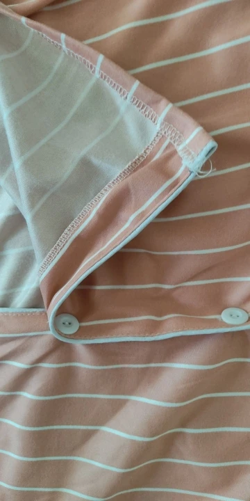Очень хорошая. Ткань довольно плотная, цвет действительно другой, не как на фото, но я на это и расчитывала, узнав об этом нюансе в комментариях. На мой российский М прекрасно подошёл L. Кое-где торчат ниточки. В принципе, я не собиралась идти в этой пижаме на встречу с президентом, поэтому такие маленькие огрехи можно простить.