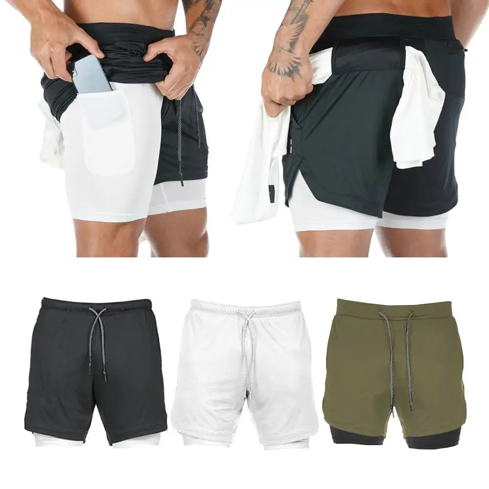 Мужские спортивные шорты 2 в 1 для бега, фитнеса и тренировок, быстросохнущие мужские шорты для спортивного зала, короткие штаны, лето 2020