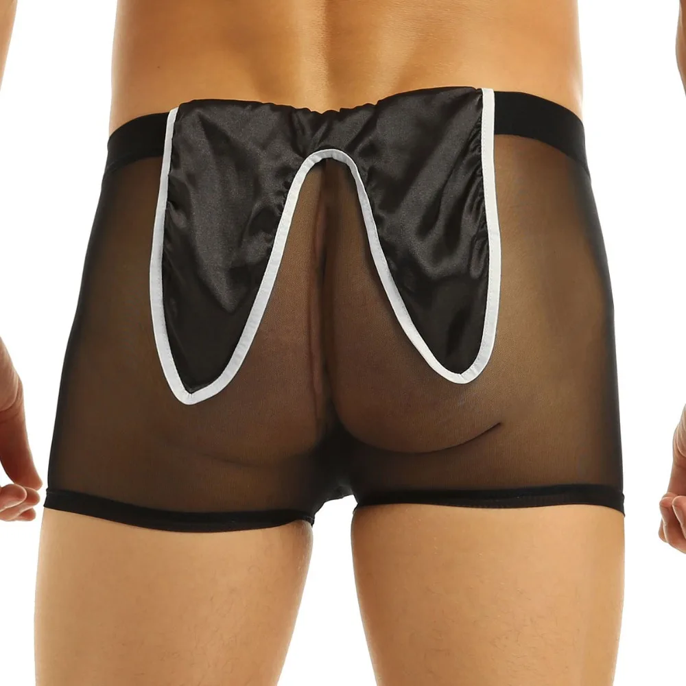 Мужское эротическое нижнее белье, сексуальное нижнее белье, смокинг официанта, прозрачные сексуальные трусы, сетчатые трусы-боксеры трусы, сексуальное нижнее белье с кроличьими ушками сзади