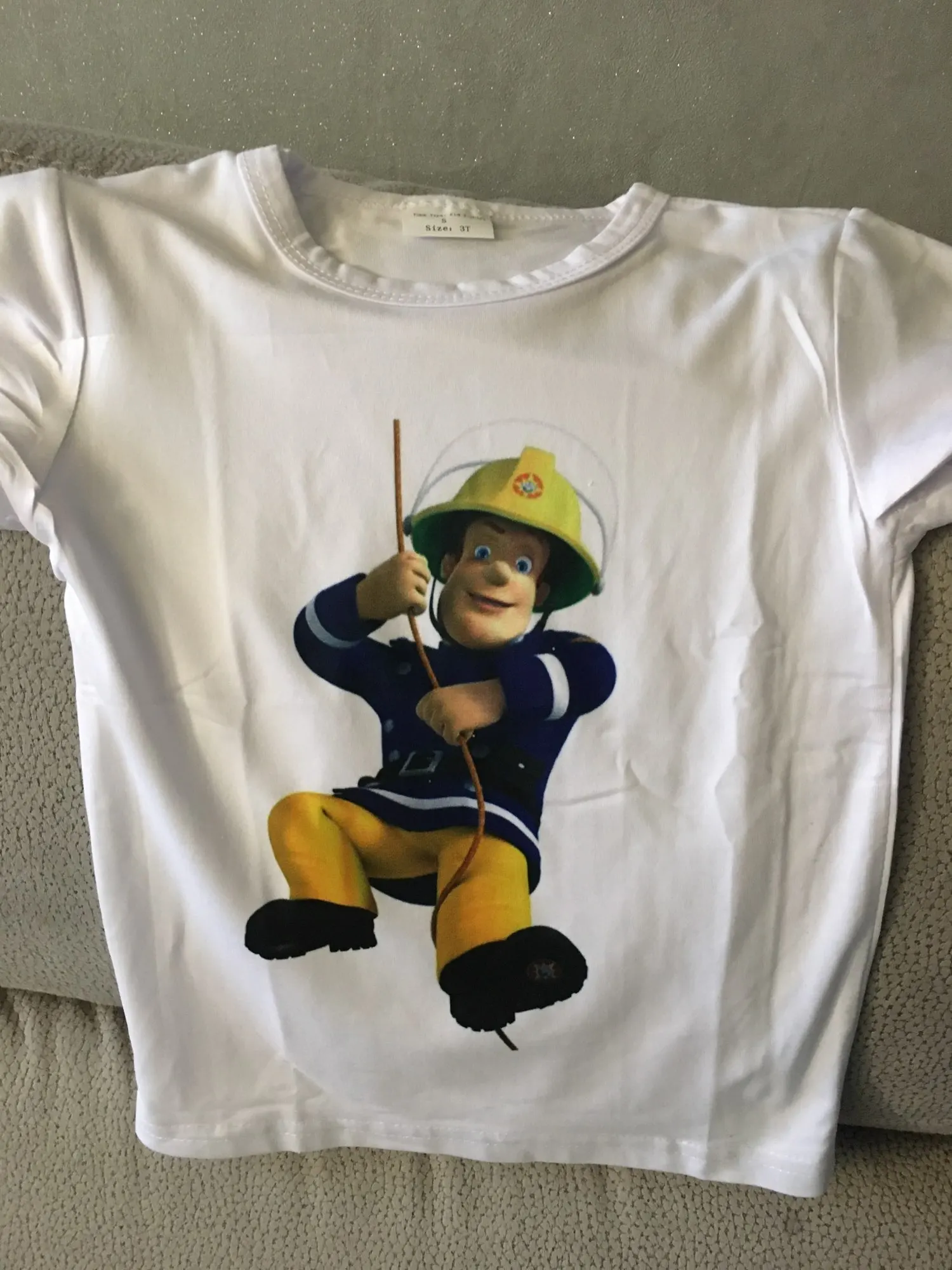 Детская забавная футболка с рисунком пожарного Сэма, детские летние топы, отличная Повседневная футболка для маленьких девочек и мальчиков