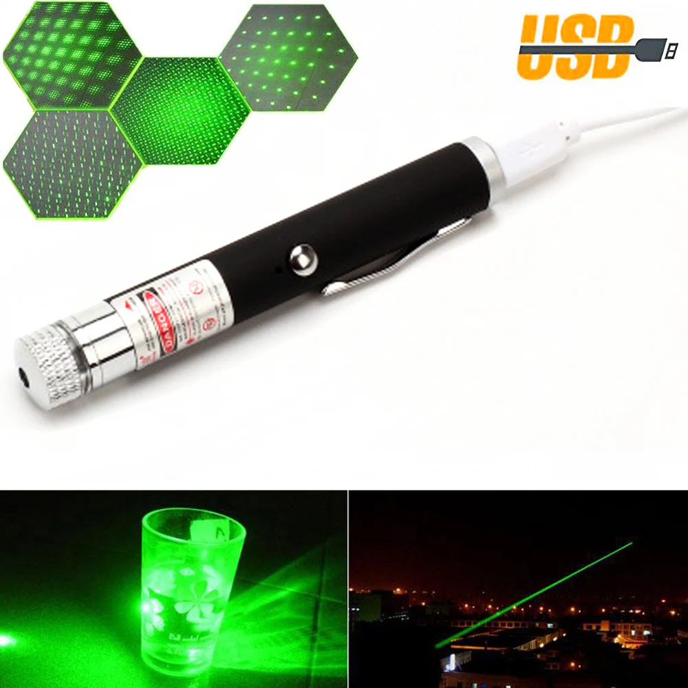 Лазерная указка с USB, 5 мВт, мощный зеленый и красный точечный лаз...