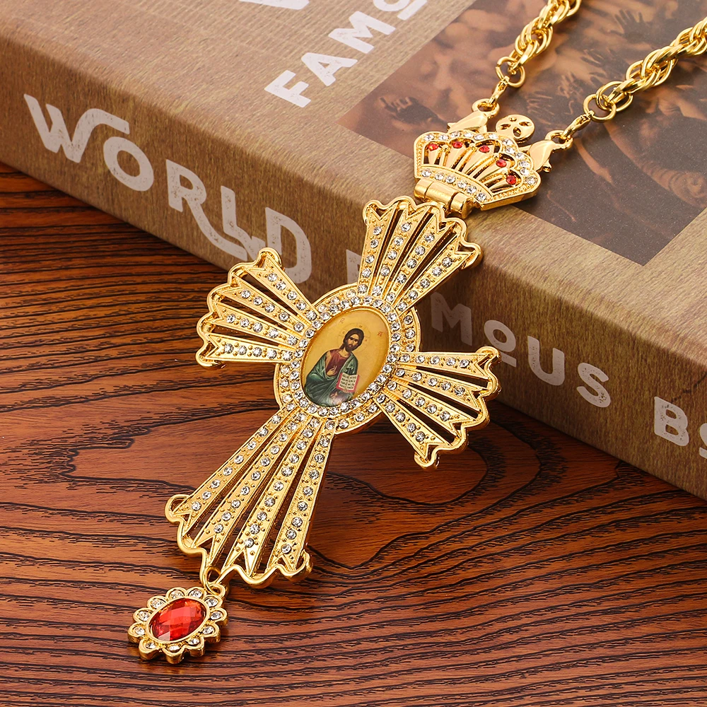 Высококачественный нательный крест православный Иисус подвески-кресты Стразы цепочка золотые религиозные украшения товары для молитвы