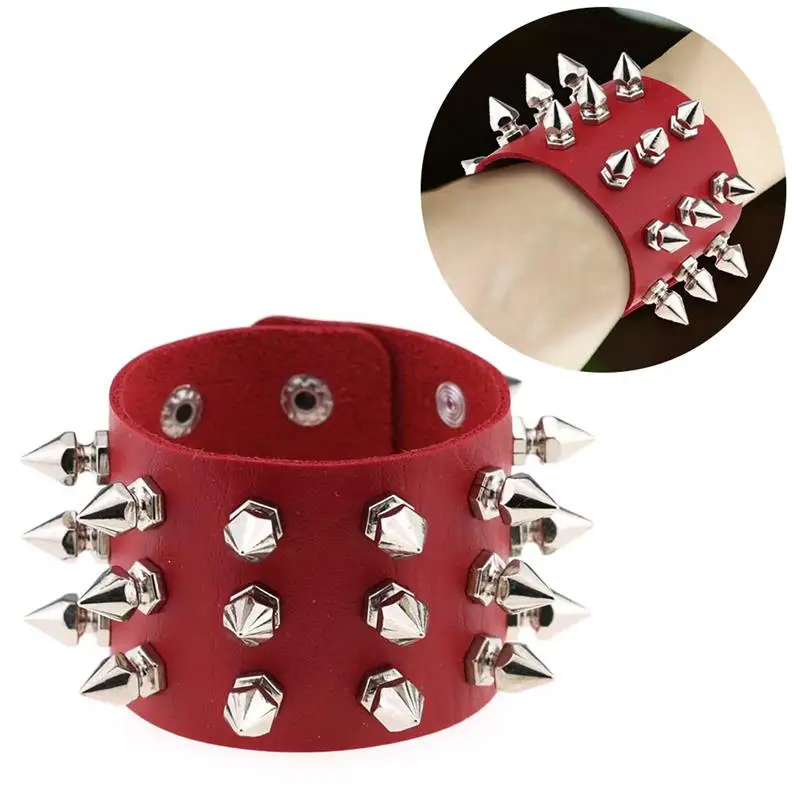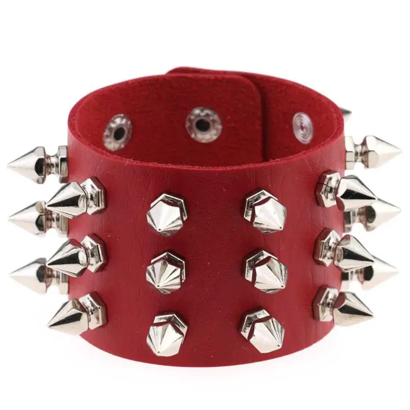 Уникальные 3 ряда Заклепки-шипы с широкими манжетами из кожи панк г...