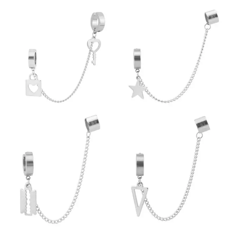 Ушные манжеты из нержавеющей стали подвеска на цепочке серьги крест...