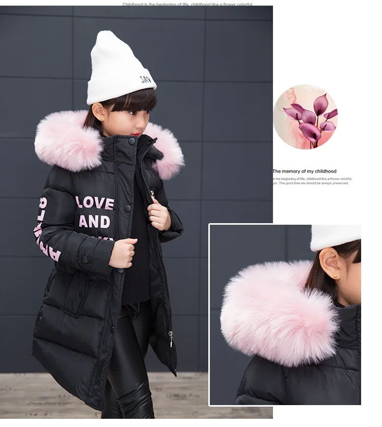 Пуховая и пуховая куртка с хлопковой подкладкой для девочек верхняя одежда новая стильная Длинная Верхняя одежда для девочек теплый пуховик Одежда для детей От 4 до 12 лет