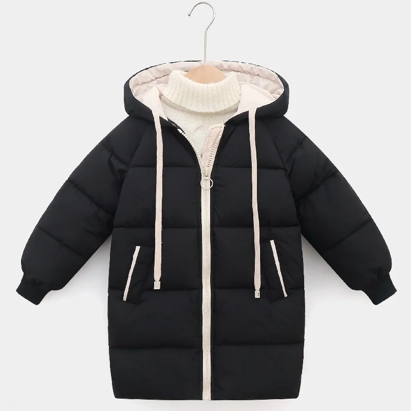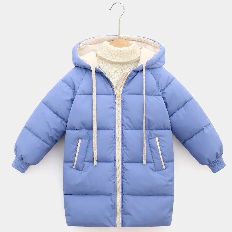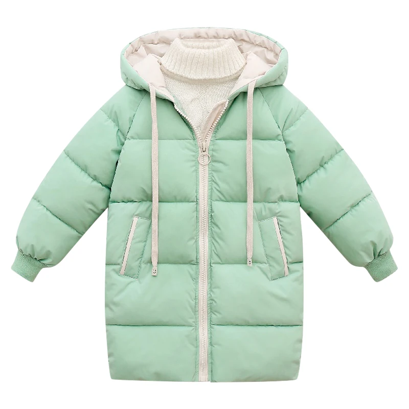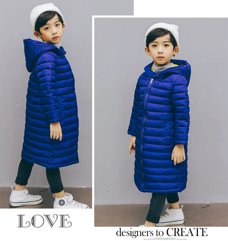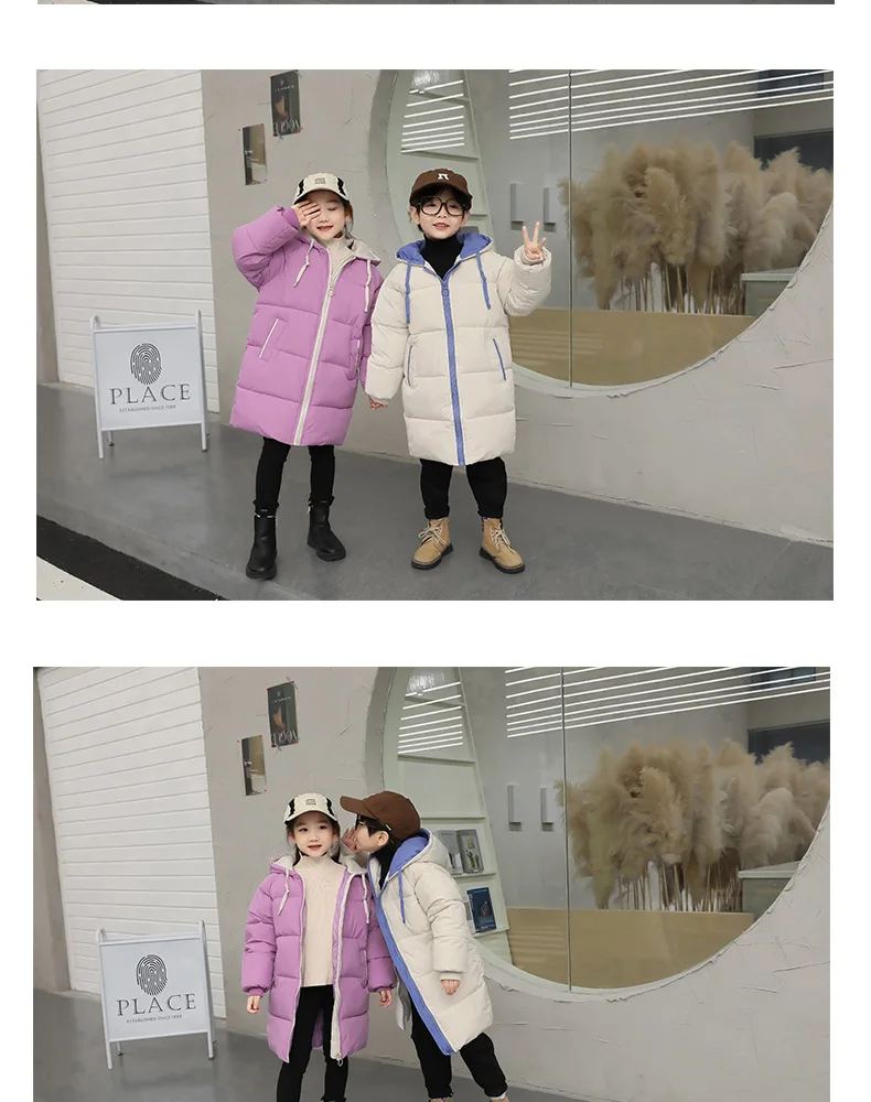 Новый Детский пуховик на осень и зиму пуховик средней длины Детская куртка из плотного бархата длинное теплое пальто