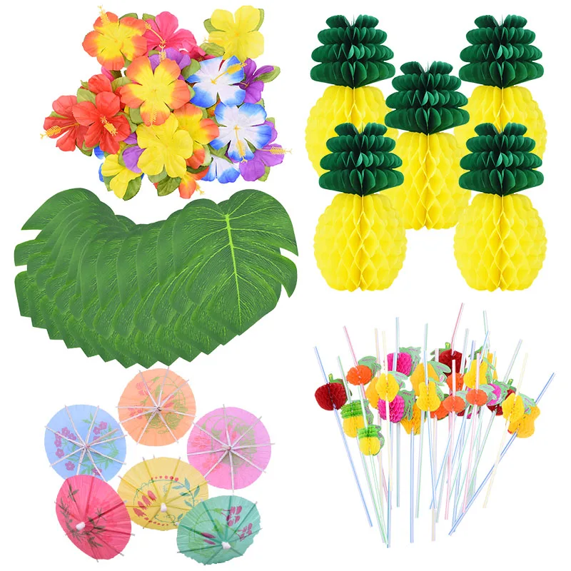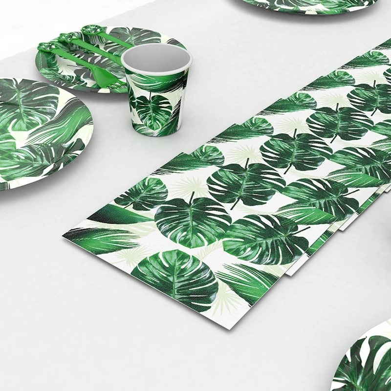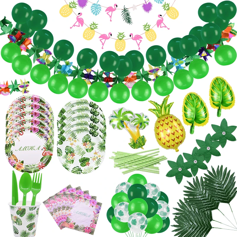 Тропические листья пальмы Гавайские украшения для вечеринки одноразовый набор посуды товары для дня рождения летняя Свадебная вечеринка Декор