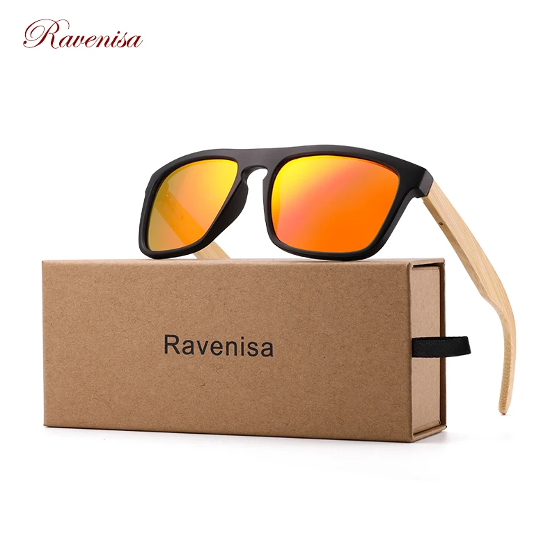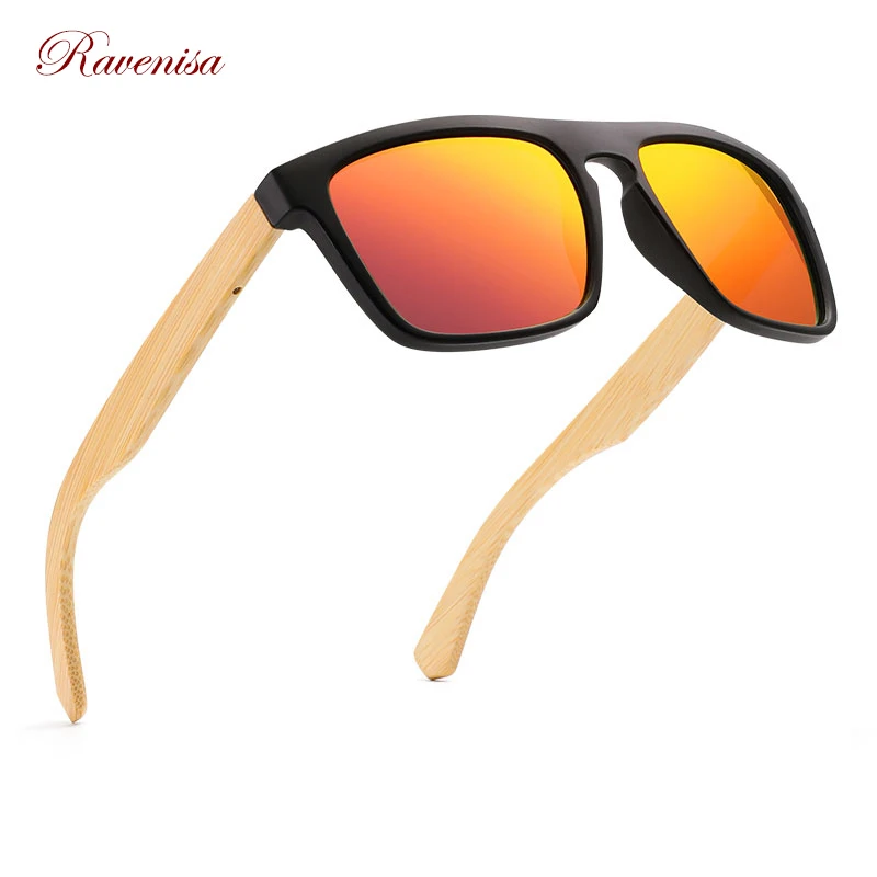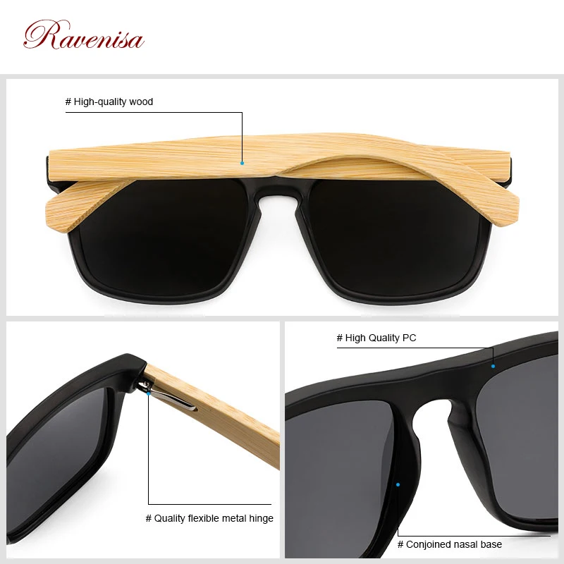 Солнцезащитные очки Ravenisa из натурального бамбука для мужчин, деревянные солнцезащитные очки, поляризованные солнцезащитные очки, прямоугольные линзы для вождения UV400