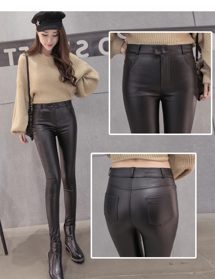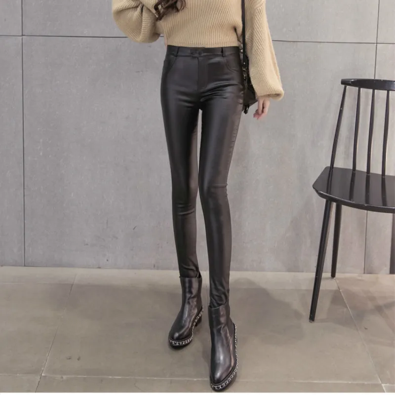 XIBUSANA 2020 Корейская версия новых осенних и зимних матовых тонких ног брюки леггинсы из ПУ эластичные плотные повседневные брюки