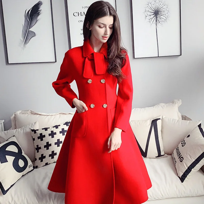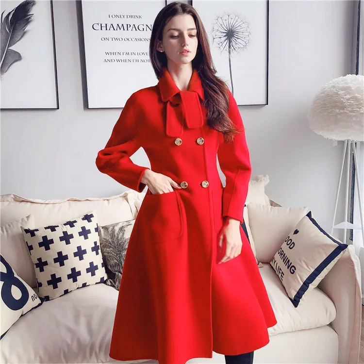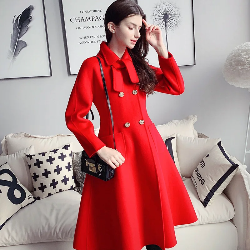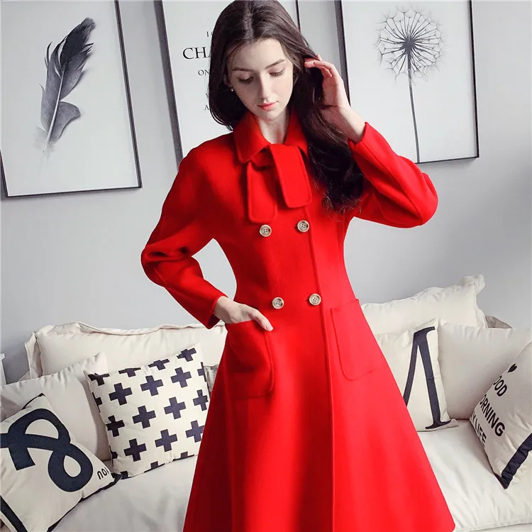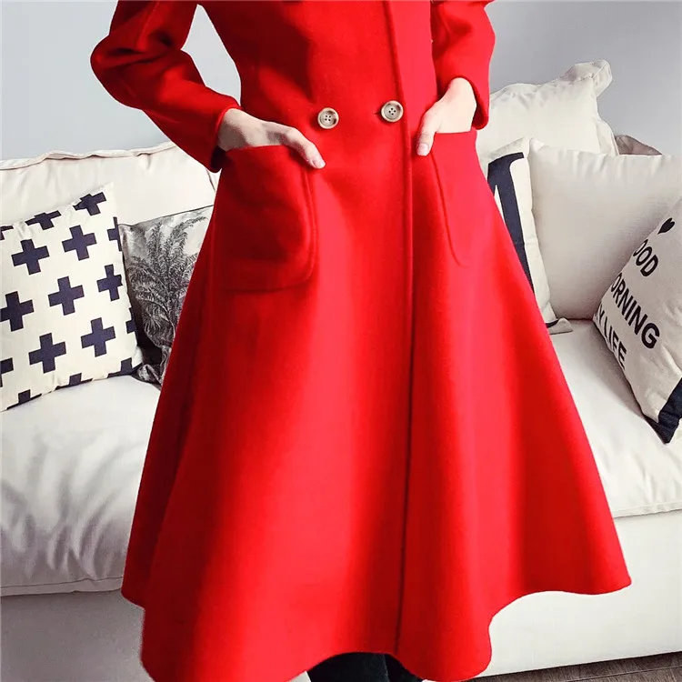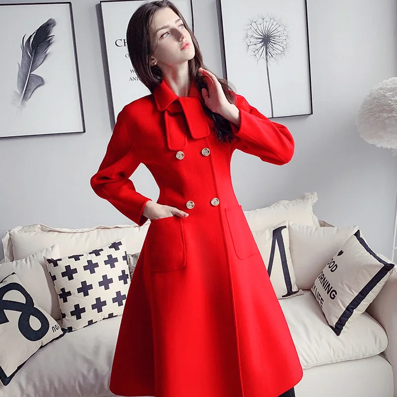 Винтажное двубортное длинное шерстяное пальто Dabuwawa, женское однотонное пальто-трапеция с длинным рукавом, верхняя одежда, DN1DLN003
