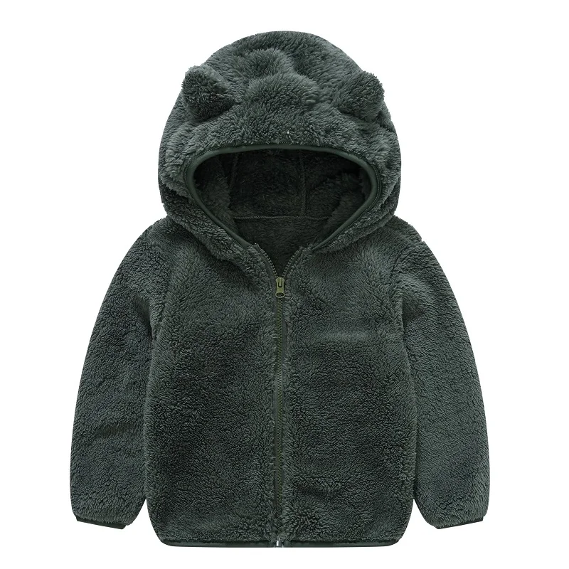 Осенне-зимнее шерстяное пальто из флиса Одежда для детей пальто на молнии с милыми ушами медведя для маленьких мальчиков и девочек