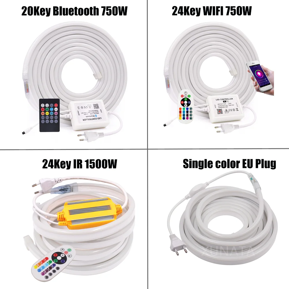AC 220V 5050 RGB неосветильник гибкая светодиодная лента 120 светодиодовм Водонепроницаемая неоновая вывеска веревка 24Key IR 1500W RGB контроллер tiras Led