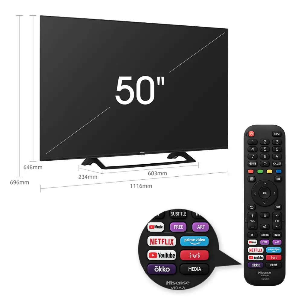 Hisense Телевизор 50 дюймов 4K Smart TV 50AE7200F, HDR, Ultra High Dynamic Range, режим Галереи, звук DTS Virtual-X