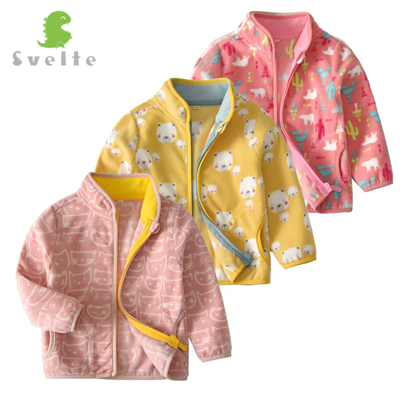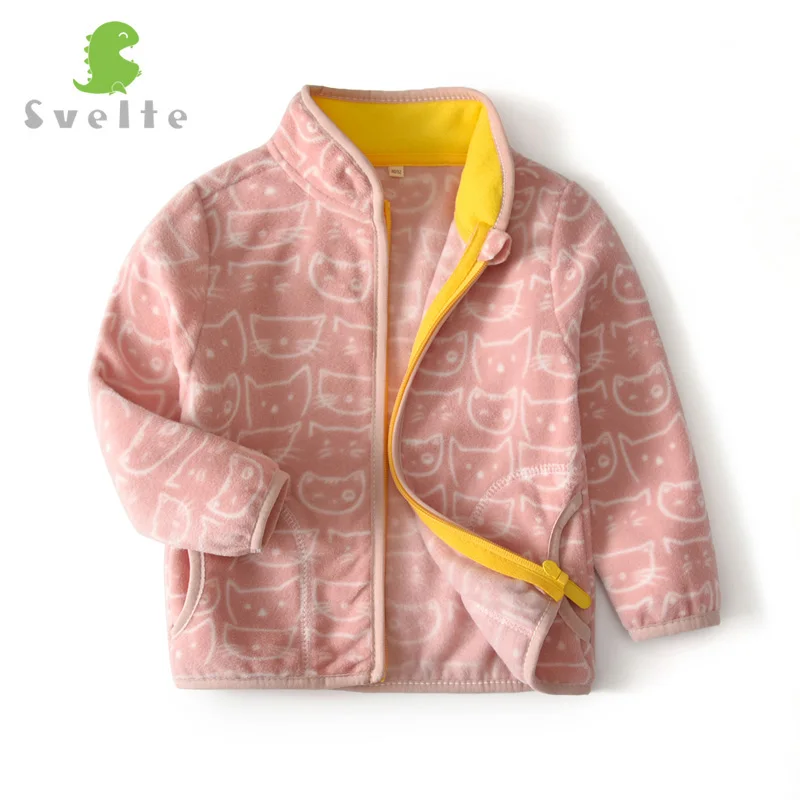 Флисовая Куртка SVELTE для девочек, осенне-зимняя куртка на молнии с принтом, весенняя одежда