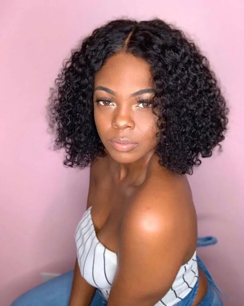 The wig was at a nice length so I hadn't to cut it to make it look more natural but after the cut it looked really great. The texture is amazing and the curls are very soft.