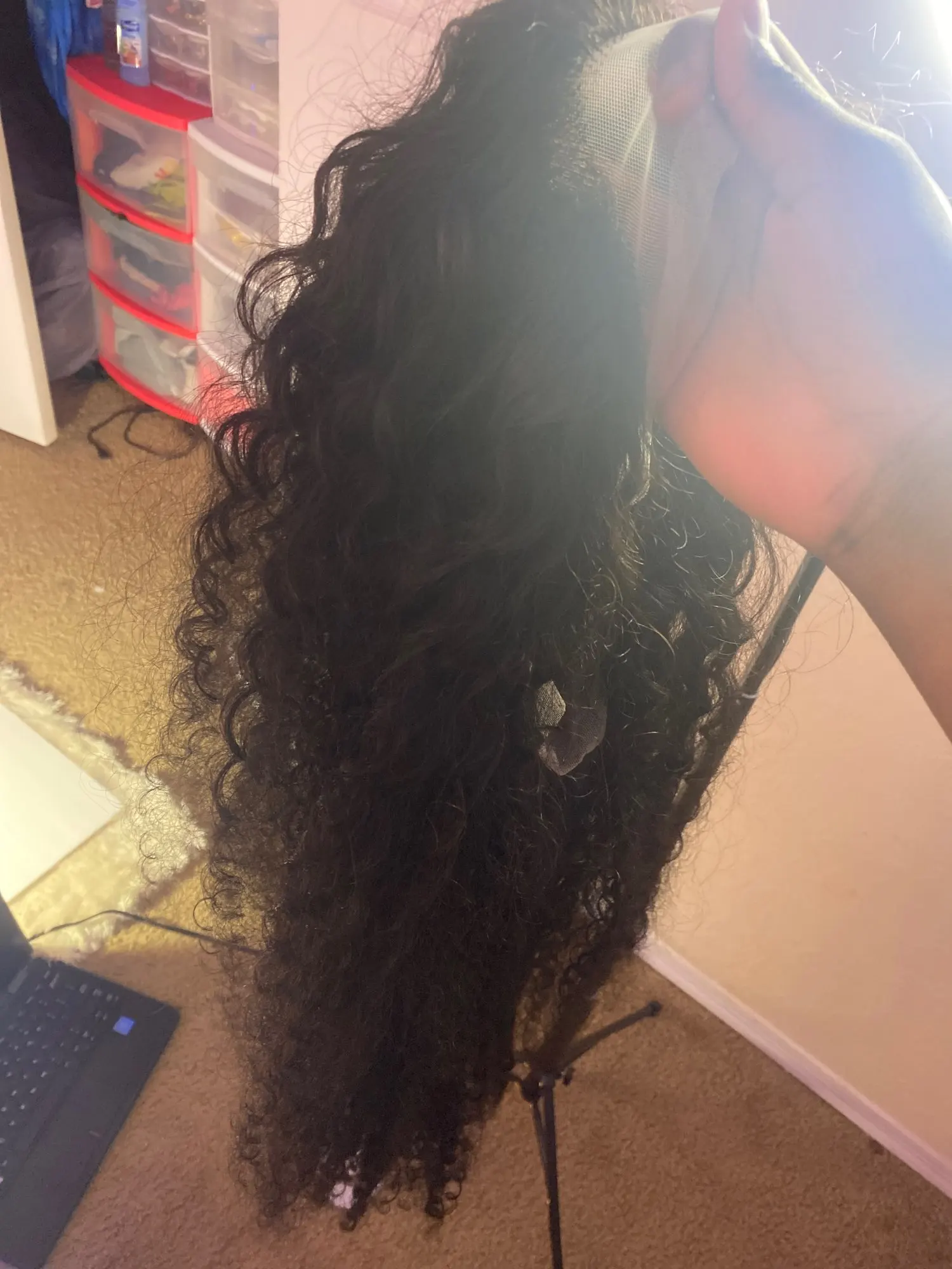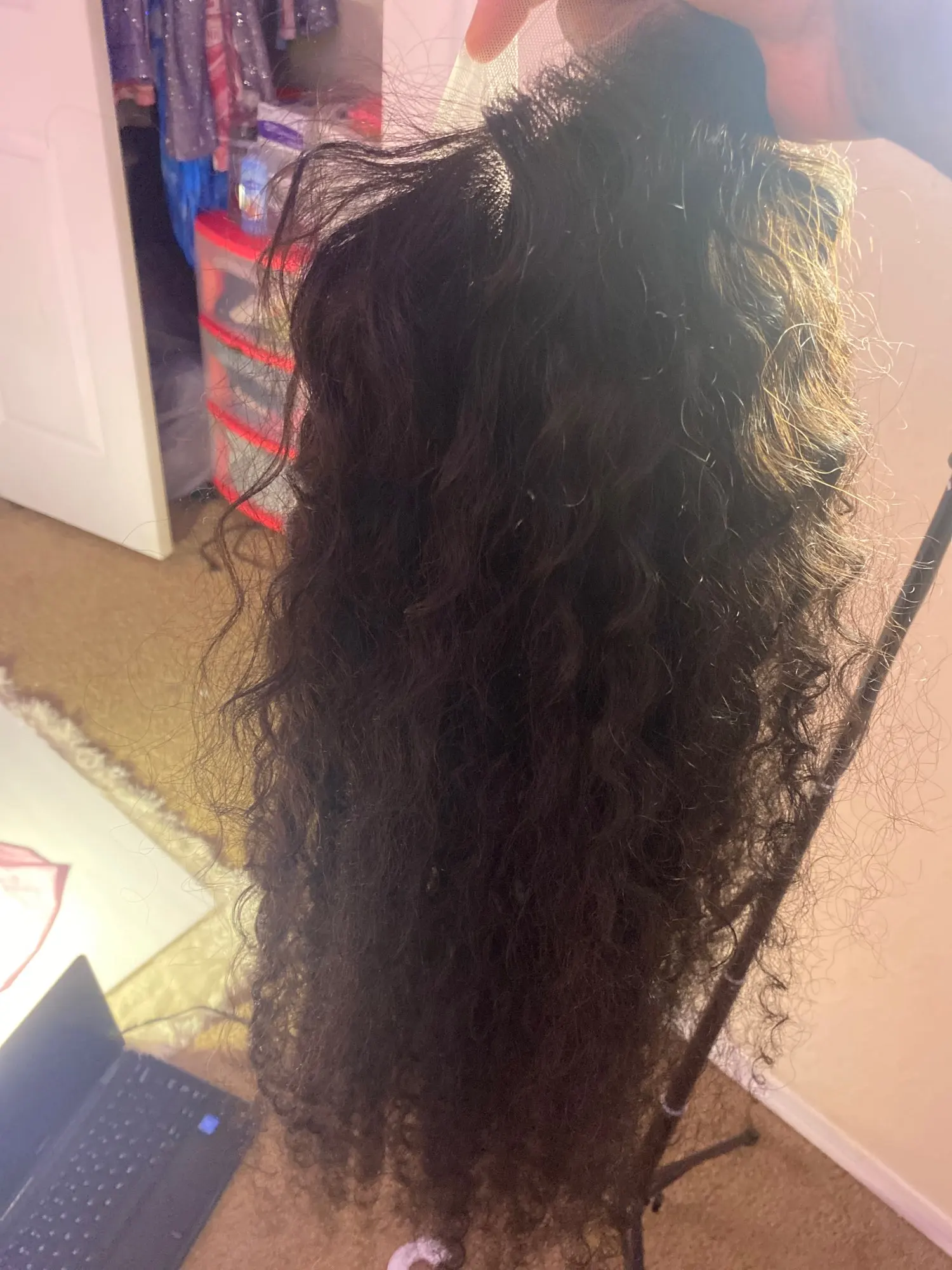 Эти волосы такие красивые. Я постирала и поставила его с фирменным «силиконом», а затем сделала минимальное выщипывание. Он поставляется с лиловой картой, которая в основном означает, что вы используете аргановое масло. Таким образом, я получил локон мусс, арагановое масло и "аргановое масло" марокканские локоны оставить в спрее. Мне даже не пришлось использовать масло на нем, только спрей и мусс. Хорошо держит влагу! Обязательно куплю у вас еще раз. Без лжи.