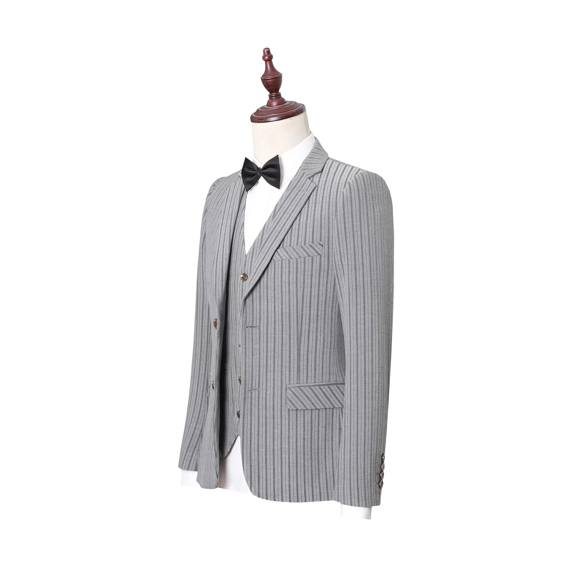 (Пиджак + жилет + брюки) мужские свадебные костюмы 2020 полосатый облегающий костюм 3 предмета красивый костюм для жениха мужской на одной пуговице для вечеринки