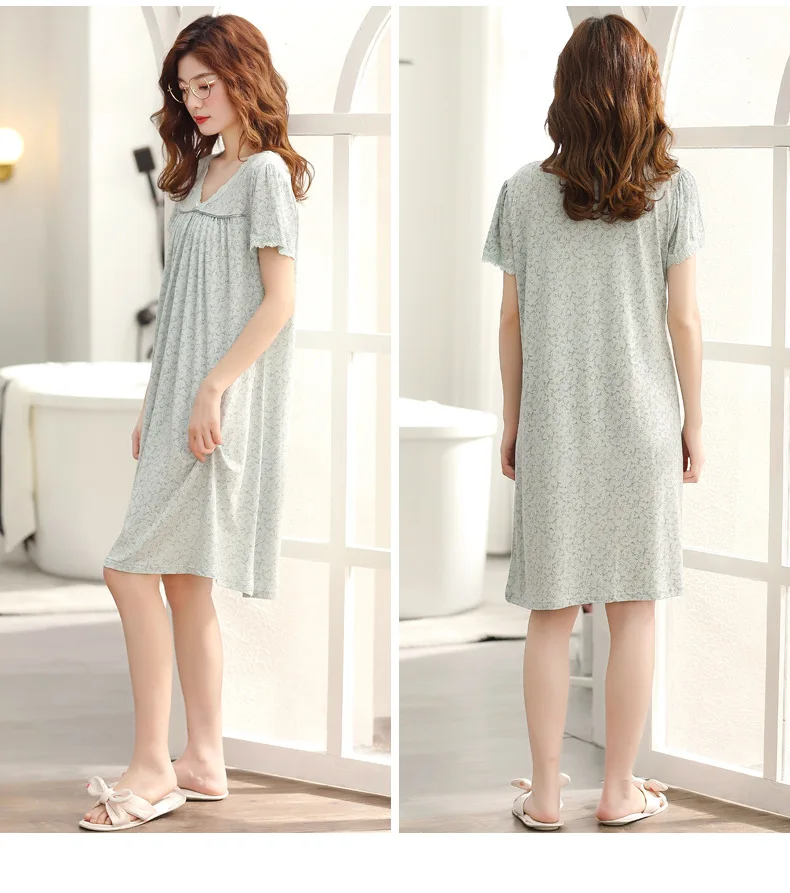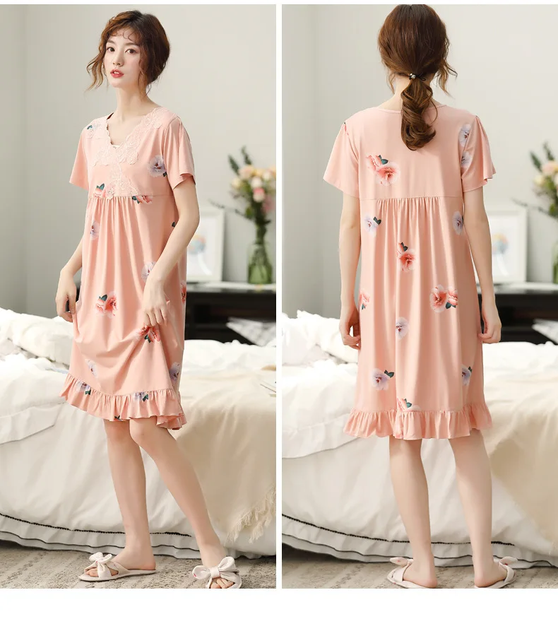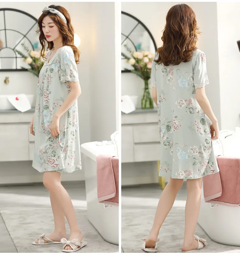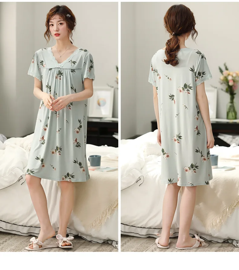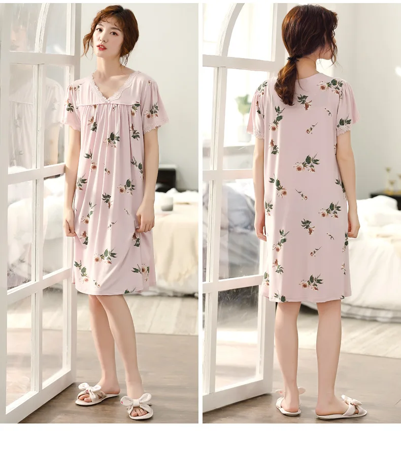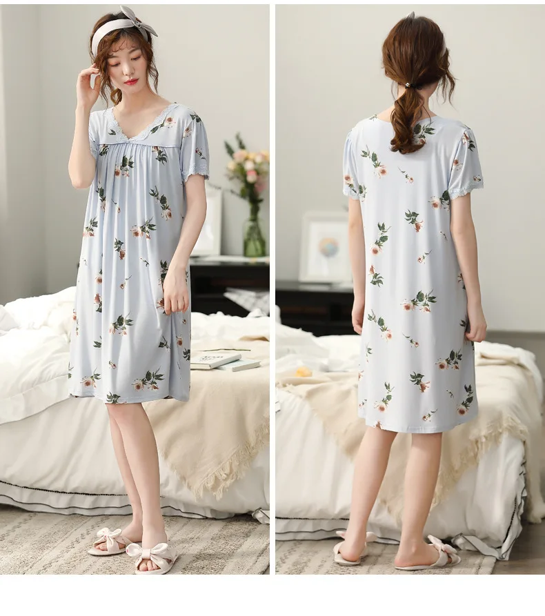 Новинка Женская Цветочная Пижама с коротким рукавом Пижама, пеньюар летняя ночная рубашка из модала и хлопка Повседневная Ночная Рубашка домашняя одежда