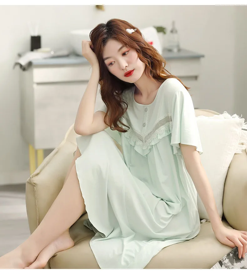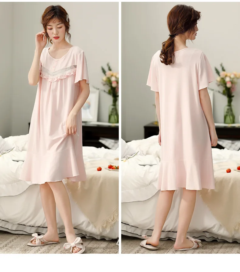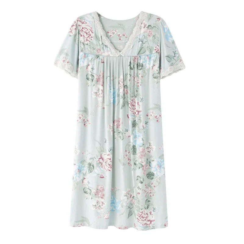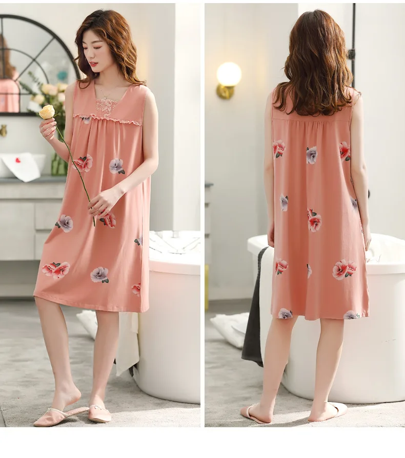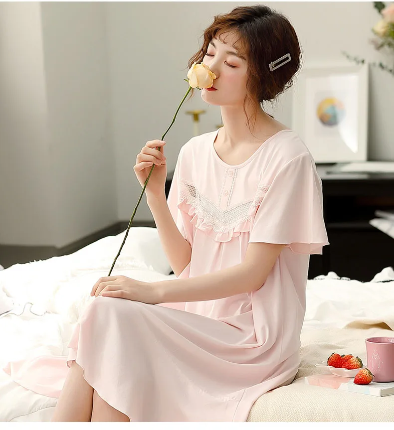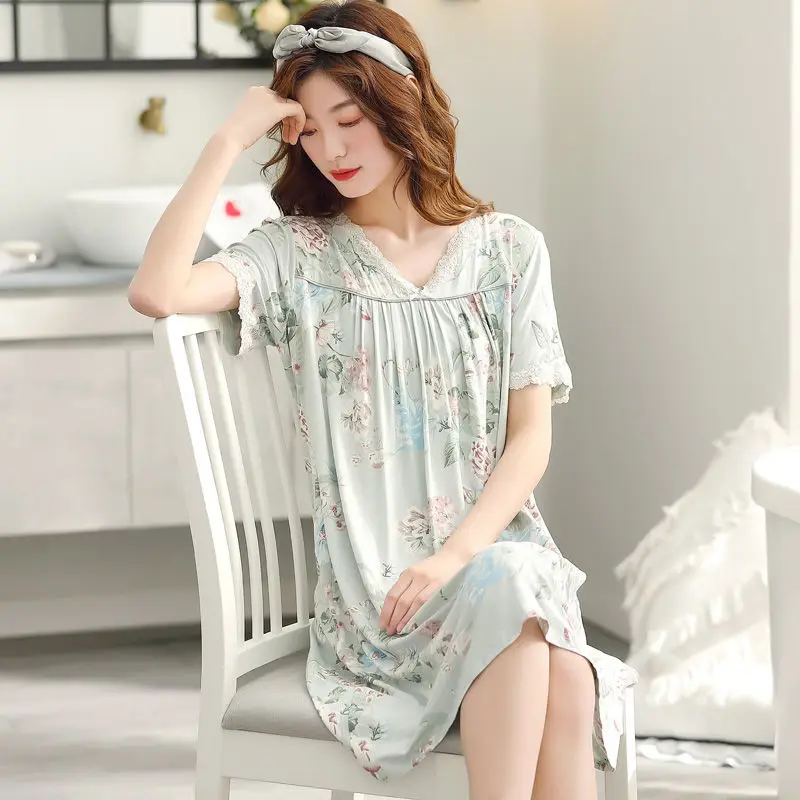 Новинка Женская Цветочная Пижама с коротким рукавом Пижама, пеньюар летняя ночная рубашка из модала и хлопка Повседневная Ночная Рубашка домашняя одежда