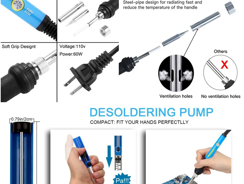 Размер паяльника: 2,4*19 см/0,9*7,5 дюйма (Д * В)