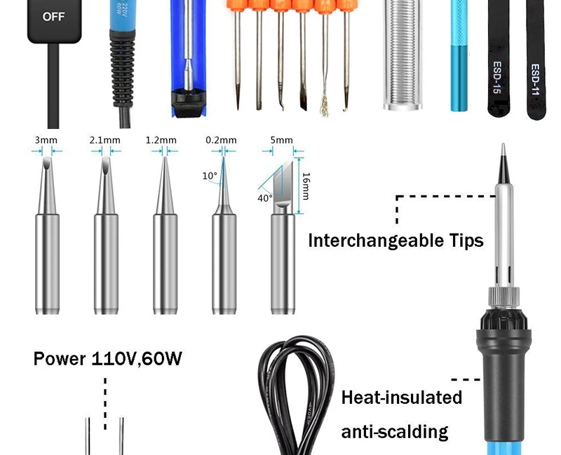 Набор паяльника с регулируемой температурой, 60 Вт, электроника, св...