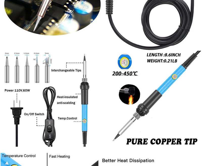 HANDSKIT 60 Вт Регулируемая температура паяльник Комплект с 5 шт. с...