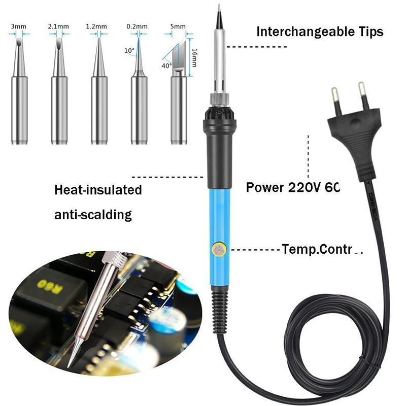 Электрический паяльник с регулируемой температурой, 220 В, 60 Вт