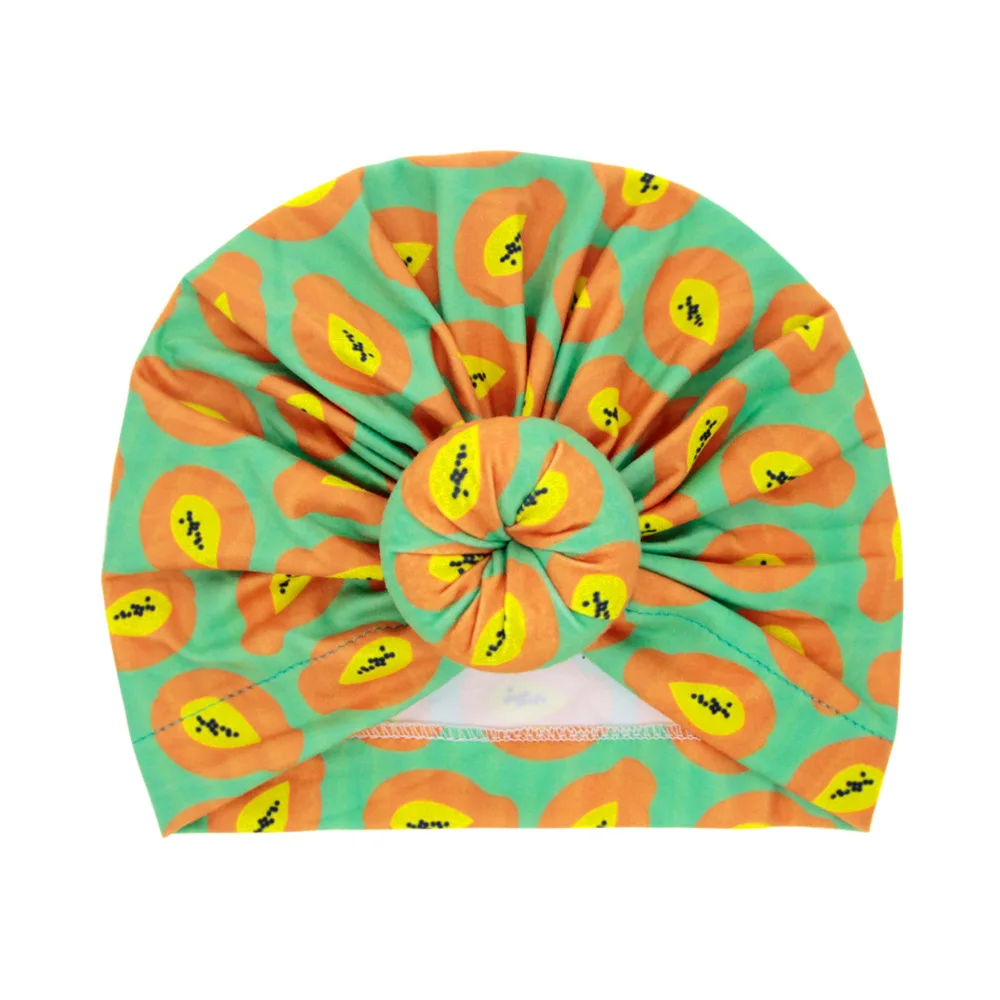 Милая шапочка с принтом фруктов для маленьких девочек на весну-лето, 1 шт., шапка для новорожденных, малышей, детей, девочек, тюрбан, круглые шапочки