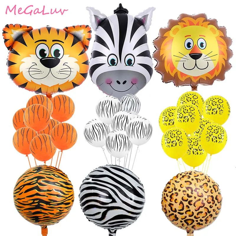 Джунгли животные, тигр, Лев с принтом «обезьяна», зеброй и жирафом; Воздушные гелиевые шары для сафари День рождения Декор на тему зоопарка расходные материалы