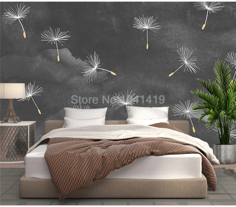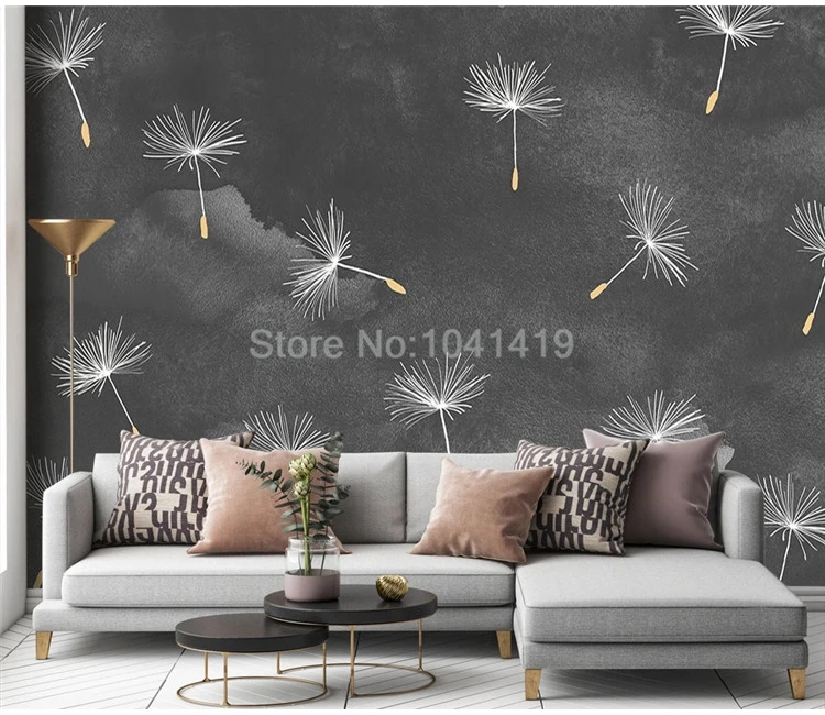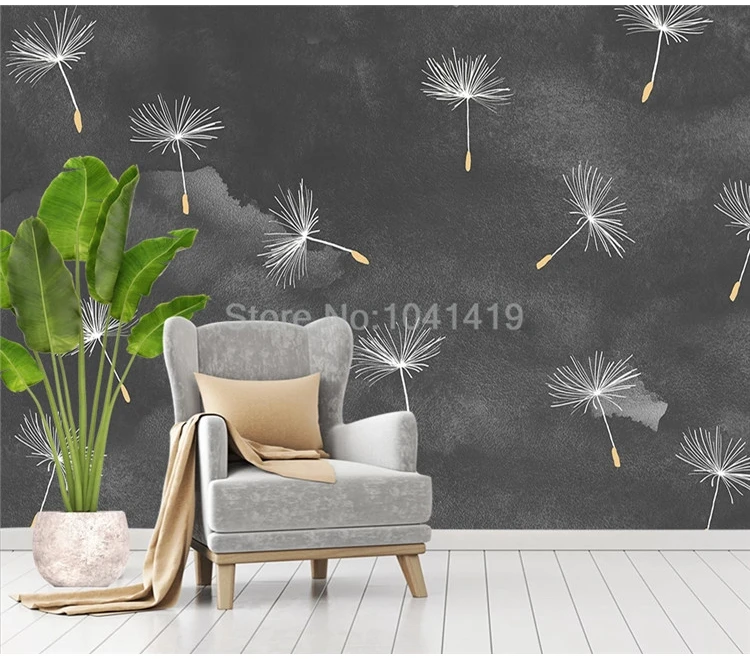 Пользовательские обои 3D серый цементный настенный белый Одуванчик цветы Настенная живопись гостиная спальня художественный фон Настенный декор