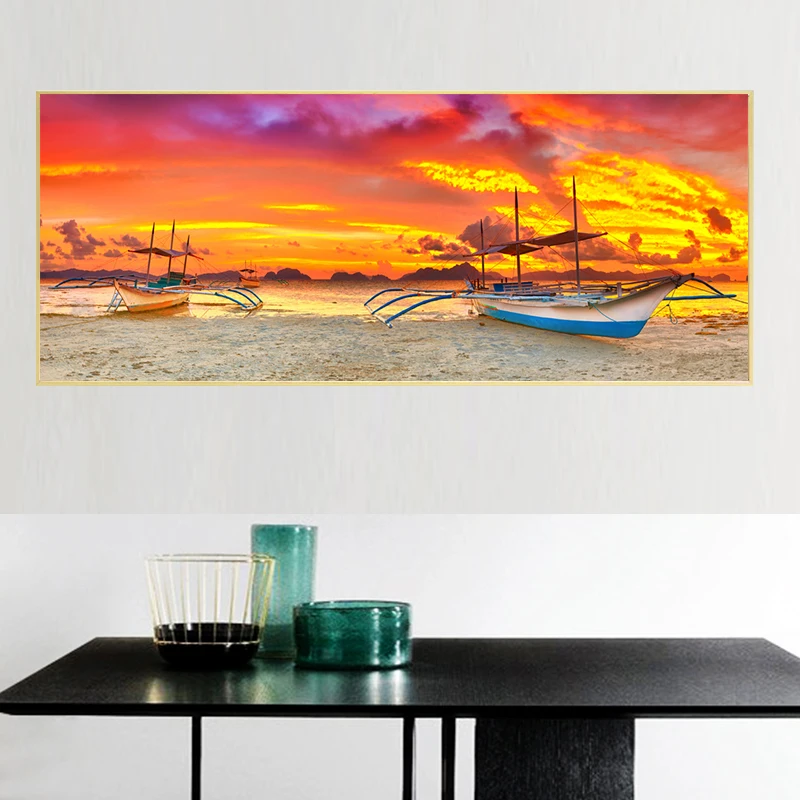 Настенная картина С закатом времени, пейзаж, Постер лодка и принты, настенные картины, картины для гостиной, Декор без рамки