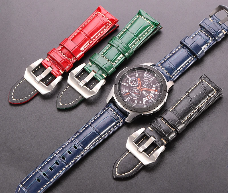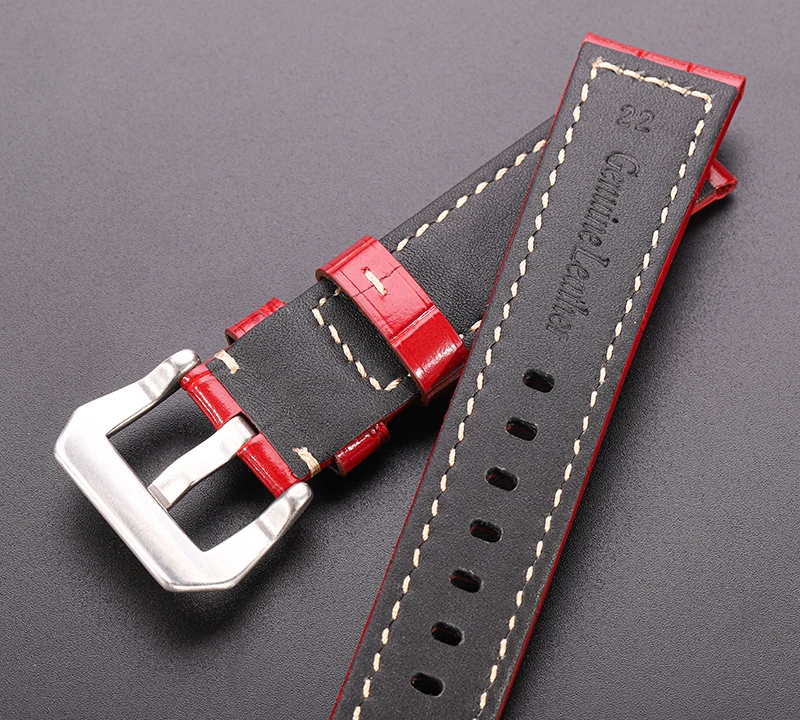Ремешок для часов, из воловьей кожи с узором под кожу крокодила, для мужчин и женщин, 20 мм 22 мм 24 мм, 5 цветов, серебристый черный браслет со стальной пряжкой