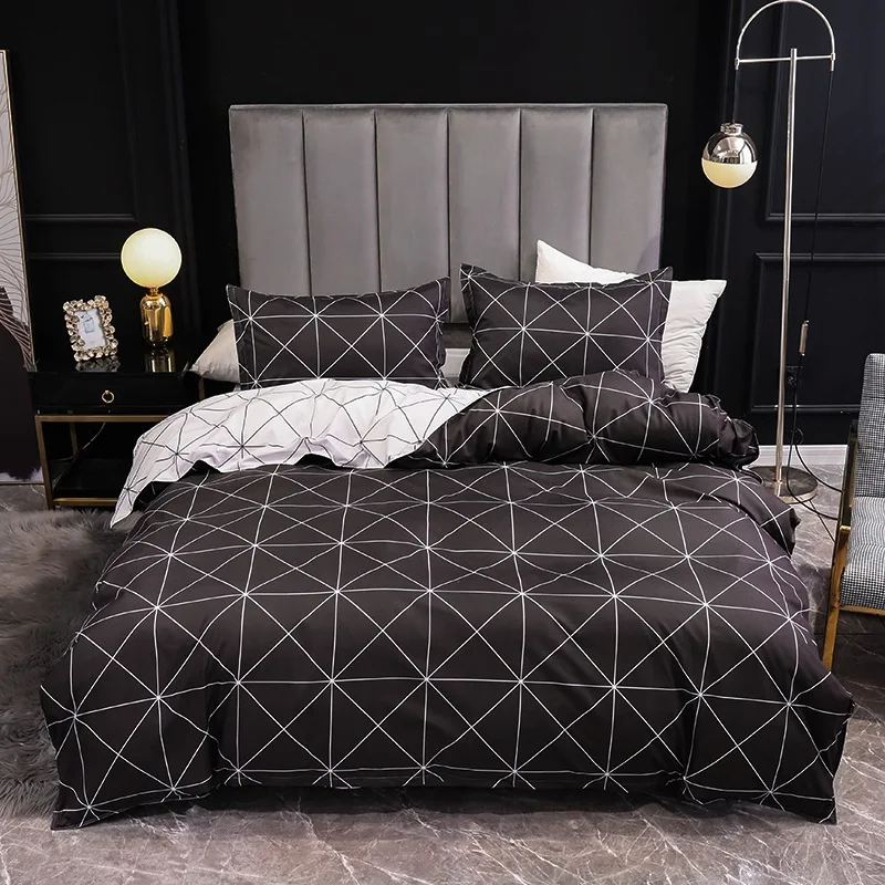 Черный и белый цвет постельное белье мрамор реактивной печати подод...
