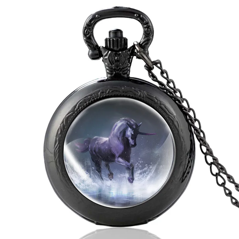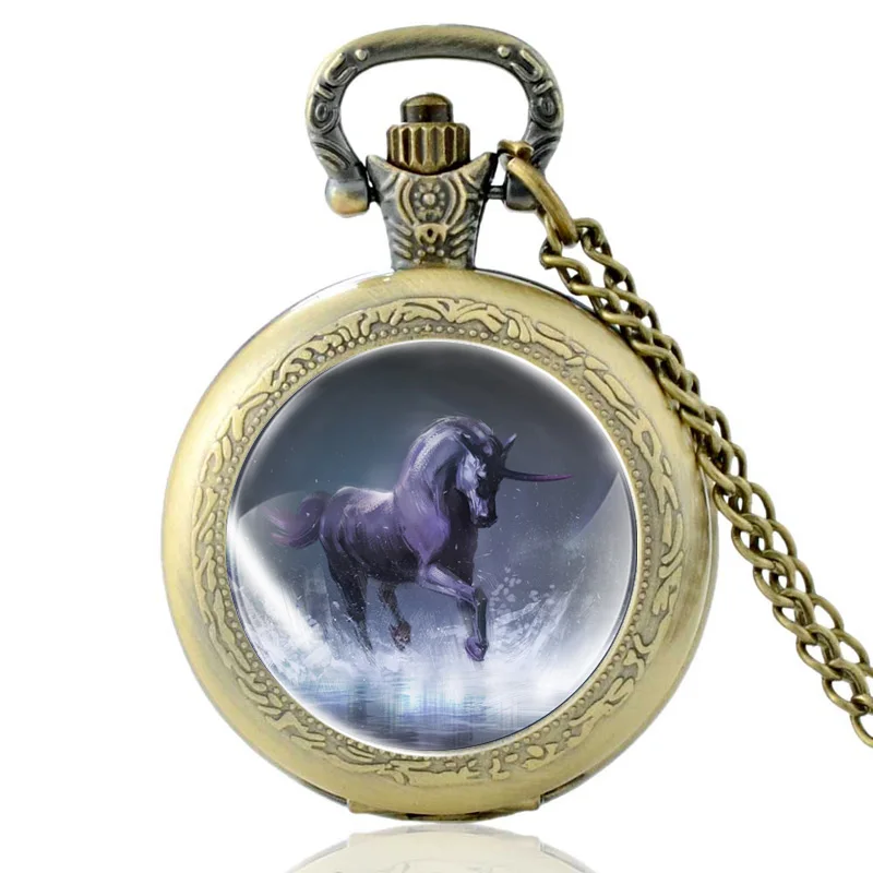 Винтажные Серебристые кварцевые карманные часы с подвеской в виде единорога и лошади