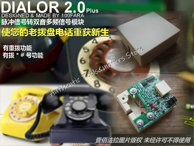 Это конвертер импульсного аудио, специально разработанный для старого телефона с циферблатом. Благодаря этому преобразователю ваш старый телефон может преобразовывать оригинальный импульсный сигнал в двухтоновый многочастотный (DTMF) сигнал. Номер, набранный вашим телефоном, может быть распознан современными переключателями для достижения цели набора номера. Таким образом, ваш любимый телефон не только используется в качестве украшения, но и может использоваться в повседневной жизни несколько десятилетий назад.