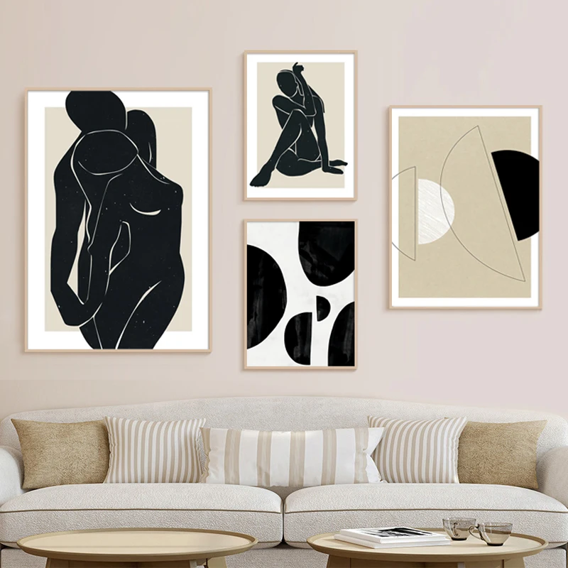 Настенные картины в скандинавском стиле с изображением девушек и же...