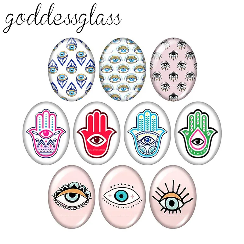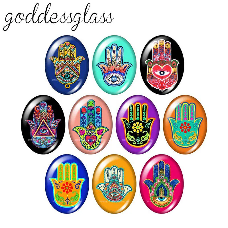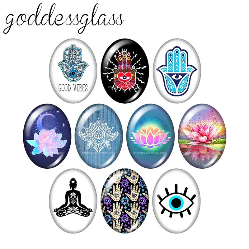Сглаза рука Йога лотоса религия 10 шт, смешанные цвета, 13x1 8 мм18x2 5 мм30x40 мм Овальный фото кабошоны разрисованные изделия из стекла с плоской задней частью, украшения своими руками