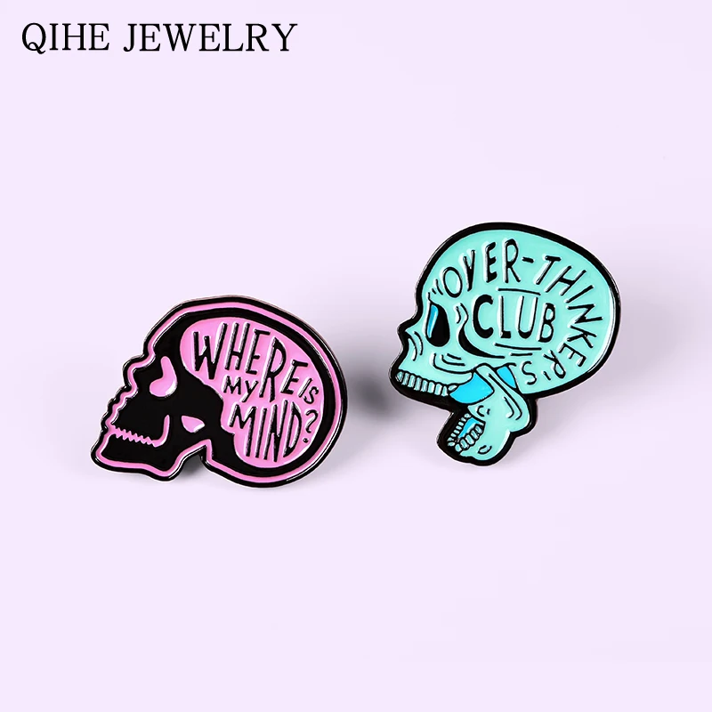 Где мой разум Эмалевые булавки на заказ Overthink Броши с черепом б...