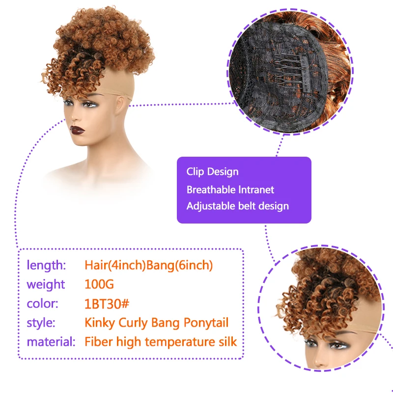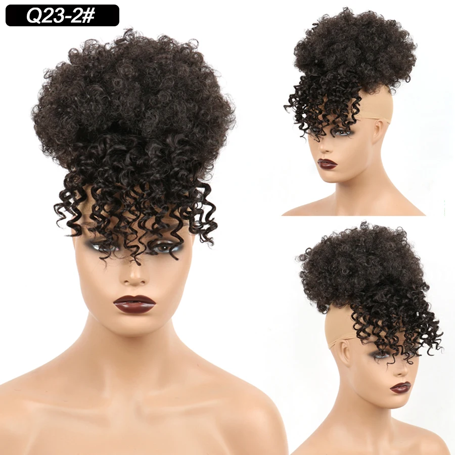 Синтетический афро-пуховик на шнурке с челкой, короткий кудрявый пучок с зажимом, накидка на хвост, наращивание волос для африканских