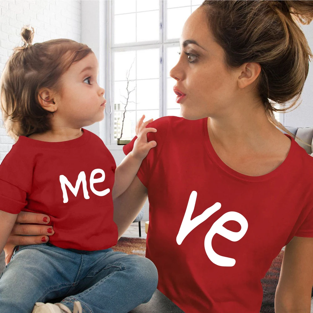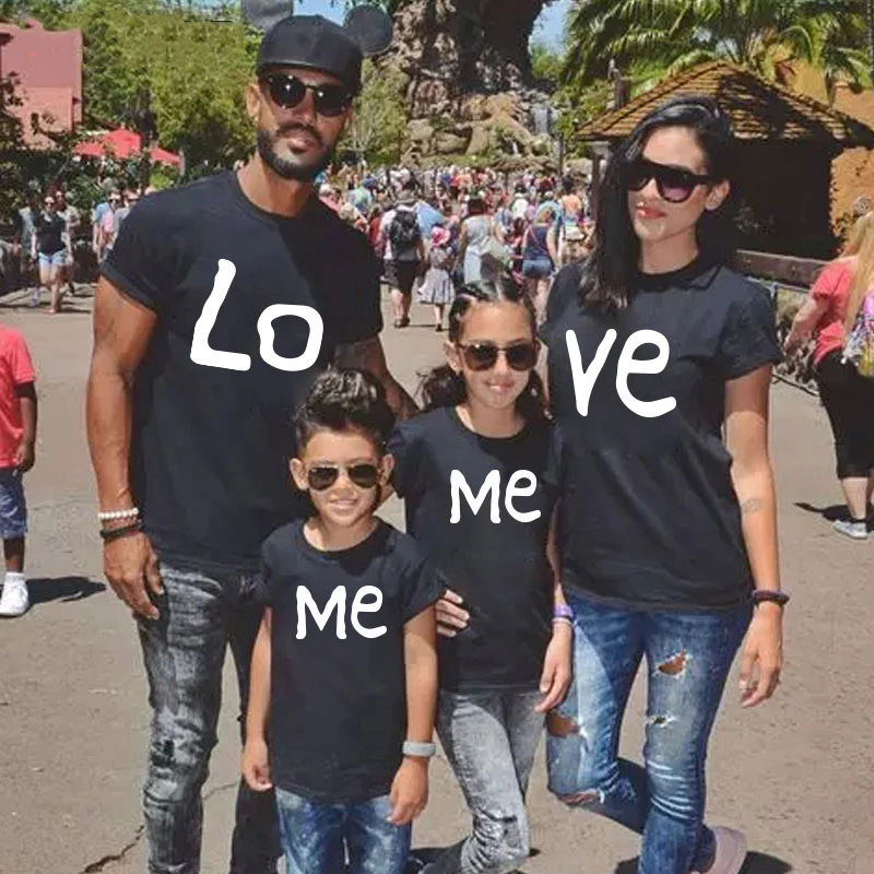 Семейные комплекты хлопковая футболка для всей семьи футболка с короткими рукавами и надписью LO VE ME Одежда для мальчиков и девочек