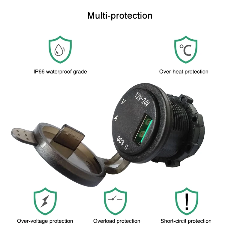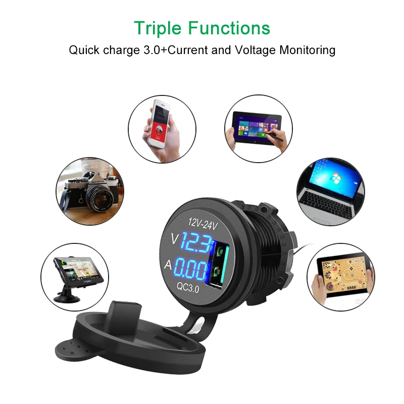 Автомобильный прикуриватель, QC 3,0, USB-разъем для зарядки, синий светодиодный цифровой дисплей, для Moto авто, грузовик, лодка