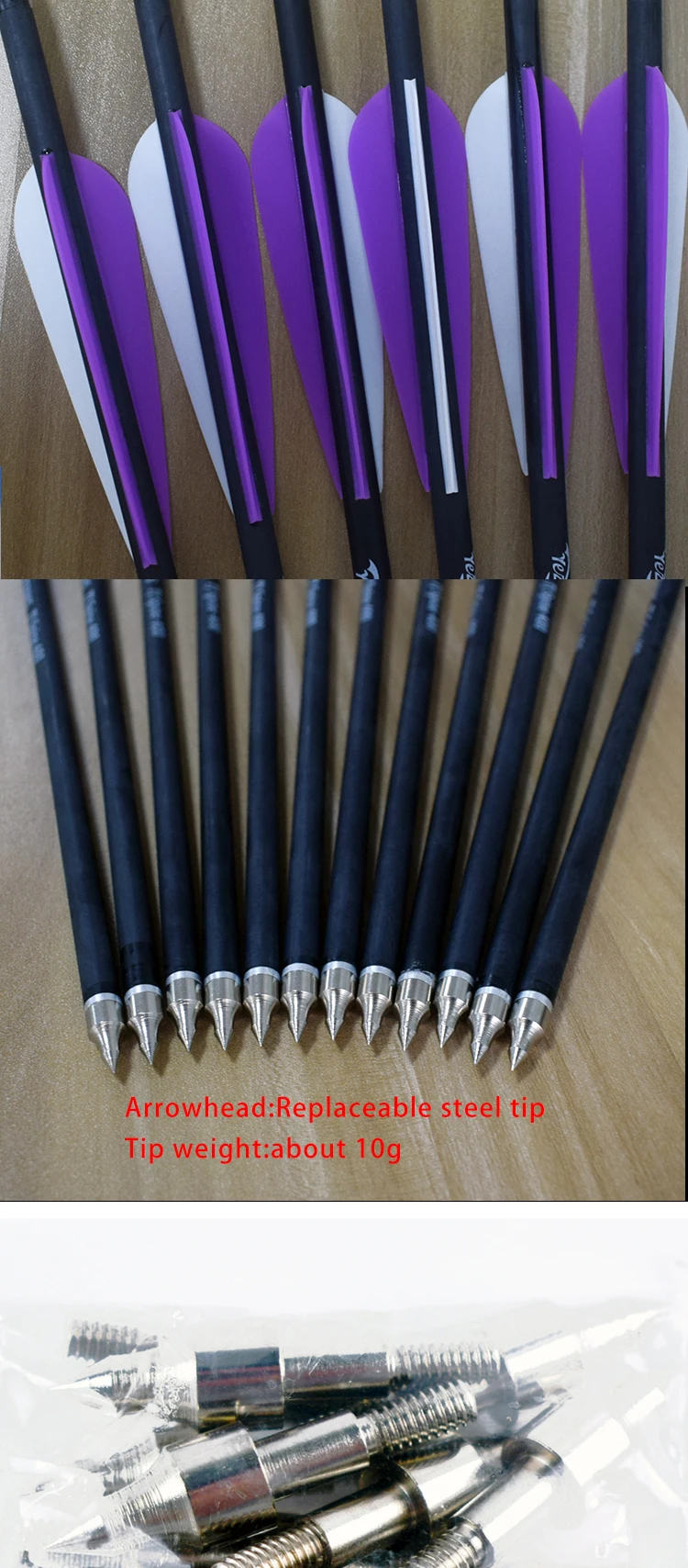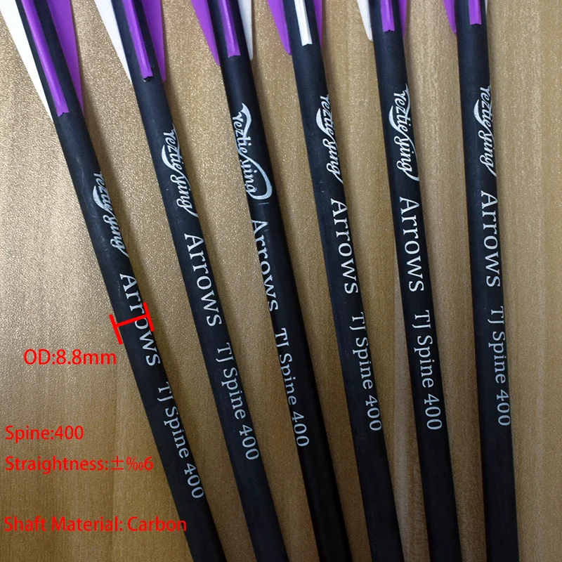 12 шт. стрельба из лука охота 16 17 18 20 дюймов карбоновые стрелы 400 с фиолетовым белым луком арбалетные болты